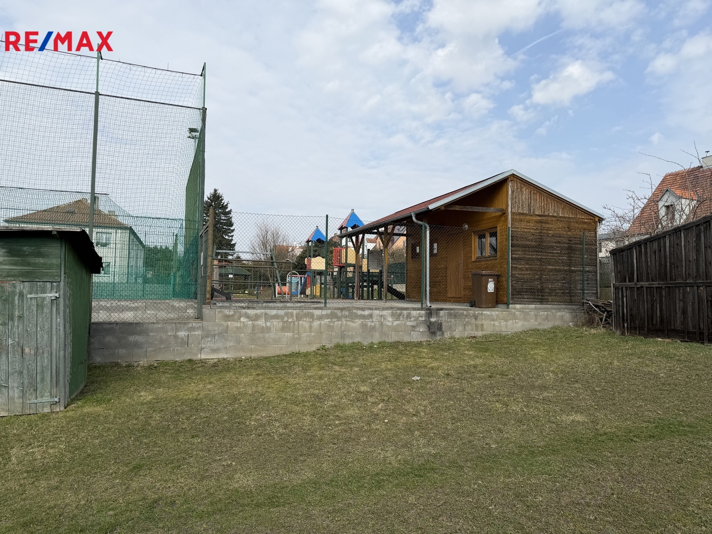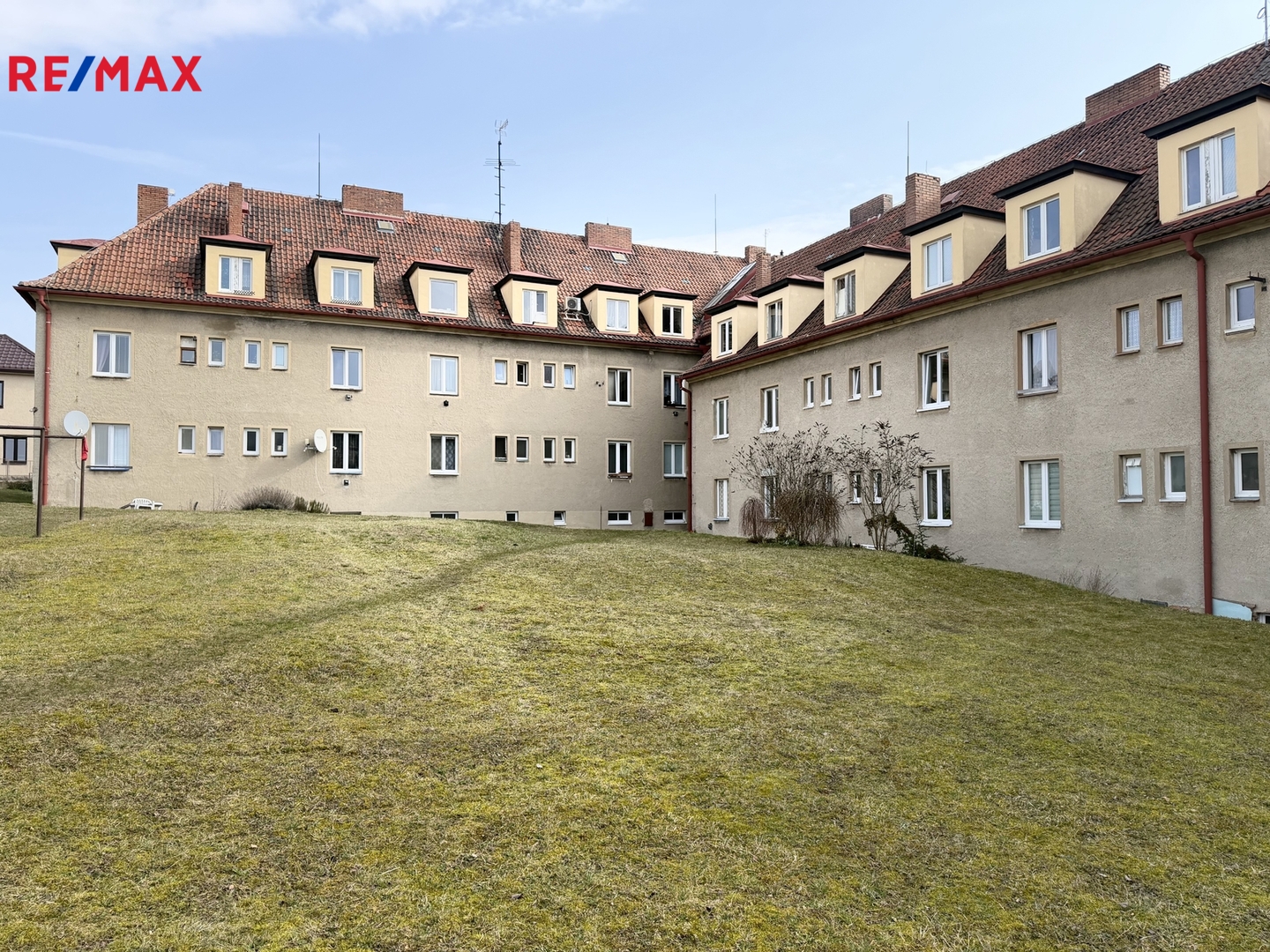 K bytu náleží spoluvlastnický podíl na velkém pozemku za domem, kde je možné například sušit prádlo.