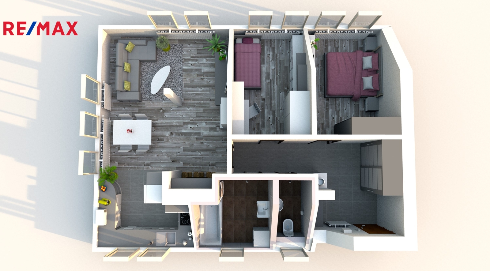 Exkluzivně nabízím ke koupi velmi hezký podkrovní byt v osobním vlastnictví umístěný v 3.nadzemním podlaží 3 podlažního zděného domu, který byl revitalizován. Byt je po zdařilé rekonstrukci ve výborném stavu. Prodává se vyklizený i bez kuchyňské linky, takže nový majitel si jej může vybavit dle svých představ. Ve fotogalerii je pro zvýšení představivosti znázorněn možný budoucí stav místností a současný stav. Obývací pokoj s kuchyňským koutem o podlahové ploše 32,8 m2 je vybaven klimatizací, okna jsou opatřena vnitřními i vnějšími roletami stejně jako okna v dalších dvou pokojích (10,3 a 10,8 m2), zde jsou navíc instalovány i zatemňovací rolety. Koupelna (6,7 m2) vybavená vanou a samostatný WC (2,7 m2) mají podlahu a stěny obložené keramickou dlažbou. Podlahy obytných místností jsou kryté plovoucí podlahou. Předsíň (11,3 m2) a kuchyňský kout mají podlahu z keramické dlažby. K bytu náleží dále sklep (2 m2). V udržovaném bytovém domě se nachází celkem 9 bytových jednotek jejichž obyvatelé mají k dispozici dále společné prostory (kočárkárna, sušárna). Z bytu je krásný výhled na město na straně severní, do přírody na straně jižní a na západní straně lze sledovat západy slunce. Přímo před domem je autobusová zastávka MHD. Za domem je společný uzavřený dvůr, kde má byt k dispozici jedno parkovací stání. Společná je i relaxační a užitková zahrada, která na dvůr navazuje. Město Beroun má veškerou občanskou vybavenost a velmi dobrou dopravní dostupnost do Prahy. Cena zahrnuje provizi, poplatky a právní služby. Možnost zajištění hypotéky. Pro další informace a termín prohlídky kontaktujte makléře.