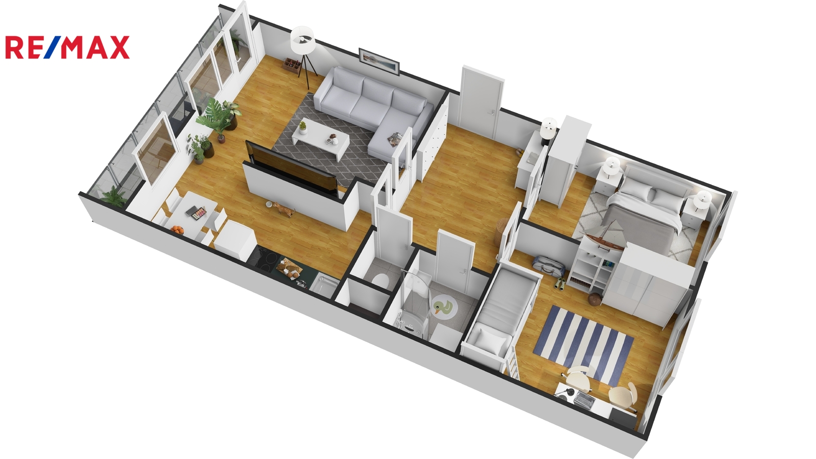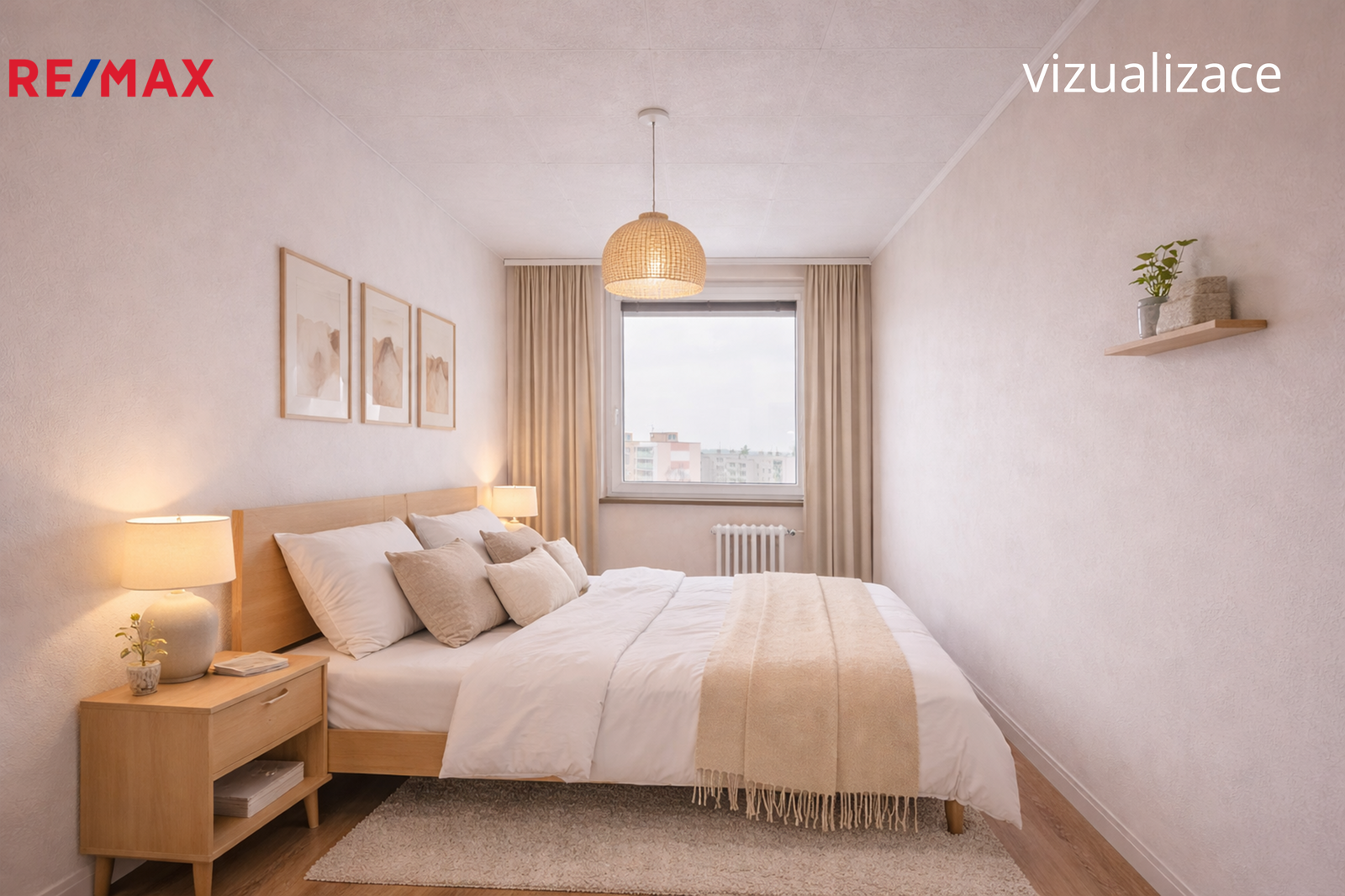 Jednotka je v původním vyklizeném stavu a je určena ke kompletní rekonstrukci, což nabízí ideální příležitost vytvořit si bydlení přesně podle vlastních představ a dispozice. Aktuální dispozice bytu je praktická – samostatné pokoje, oddělená kuchyně a lodžie přístupná z obytné části bytu. Interiér působí vzdušně a a díky větším oknům v každém místnosti a orientaci je velmi světlý. Okna v ložnicích mají venkovní elektrické rolety.