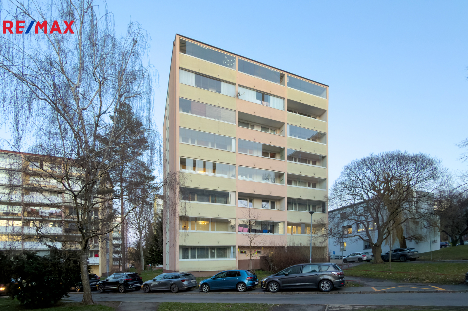 Dům je udržovaný, společné prostory jsou v dobrém stavu. Parkování je možné v okolí domu.