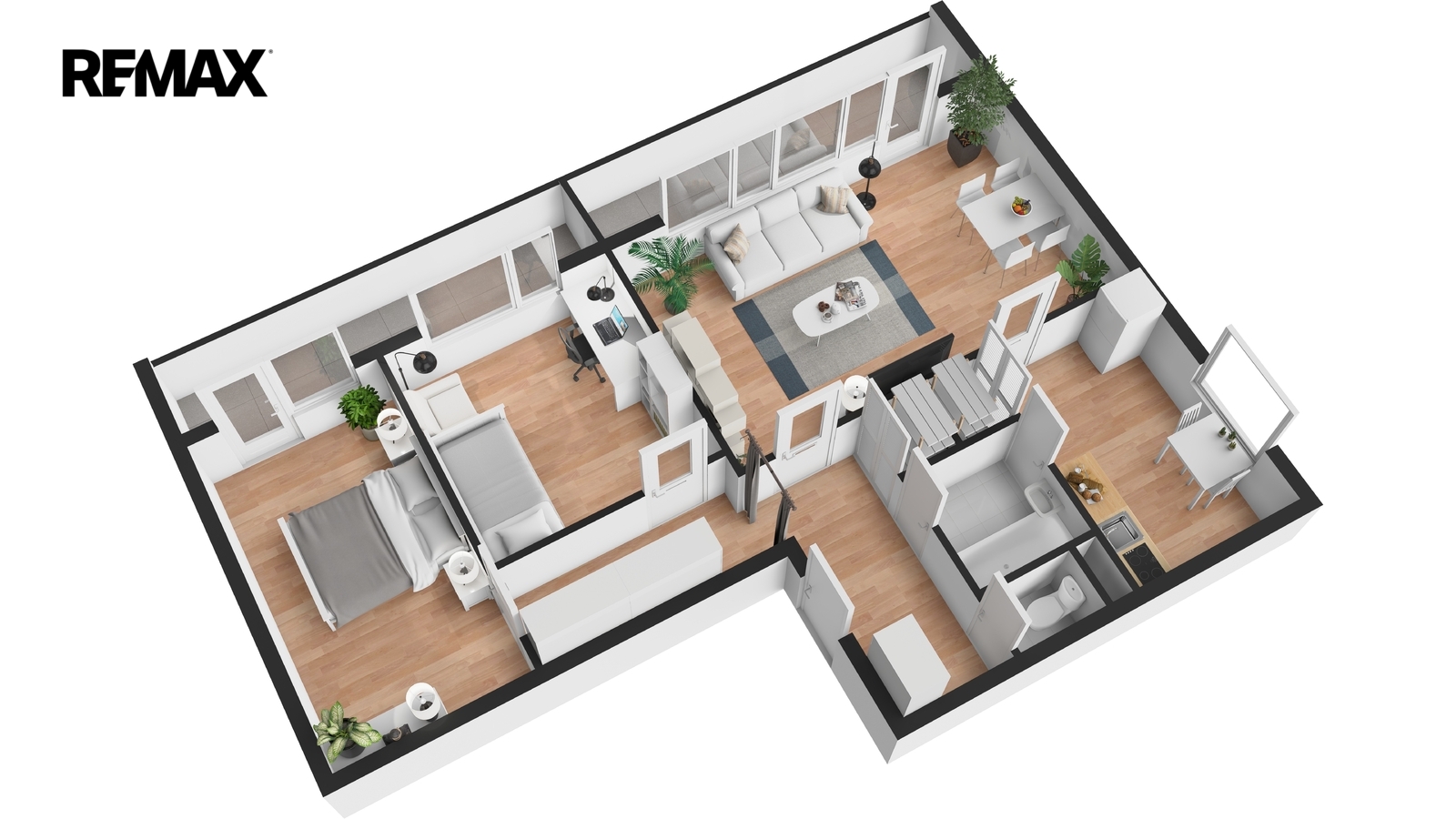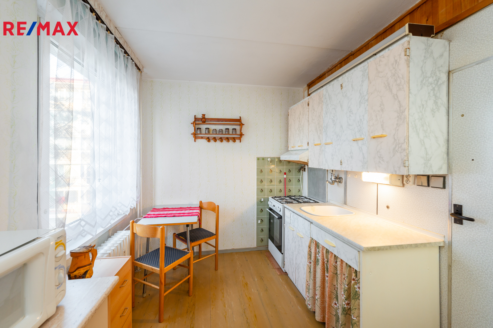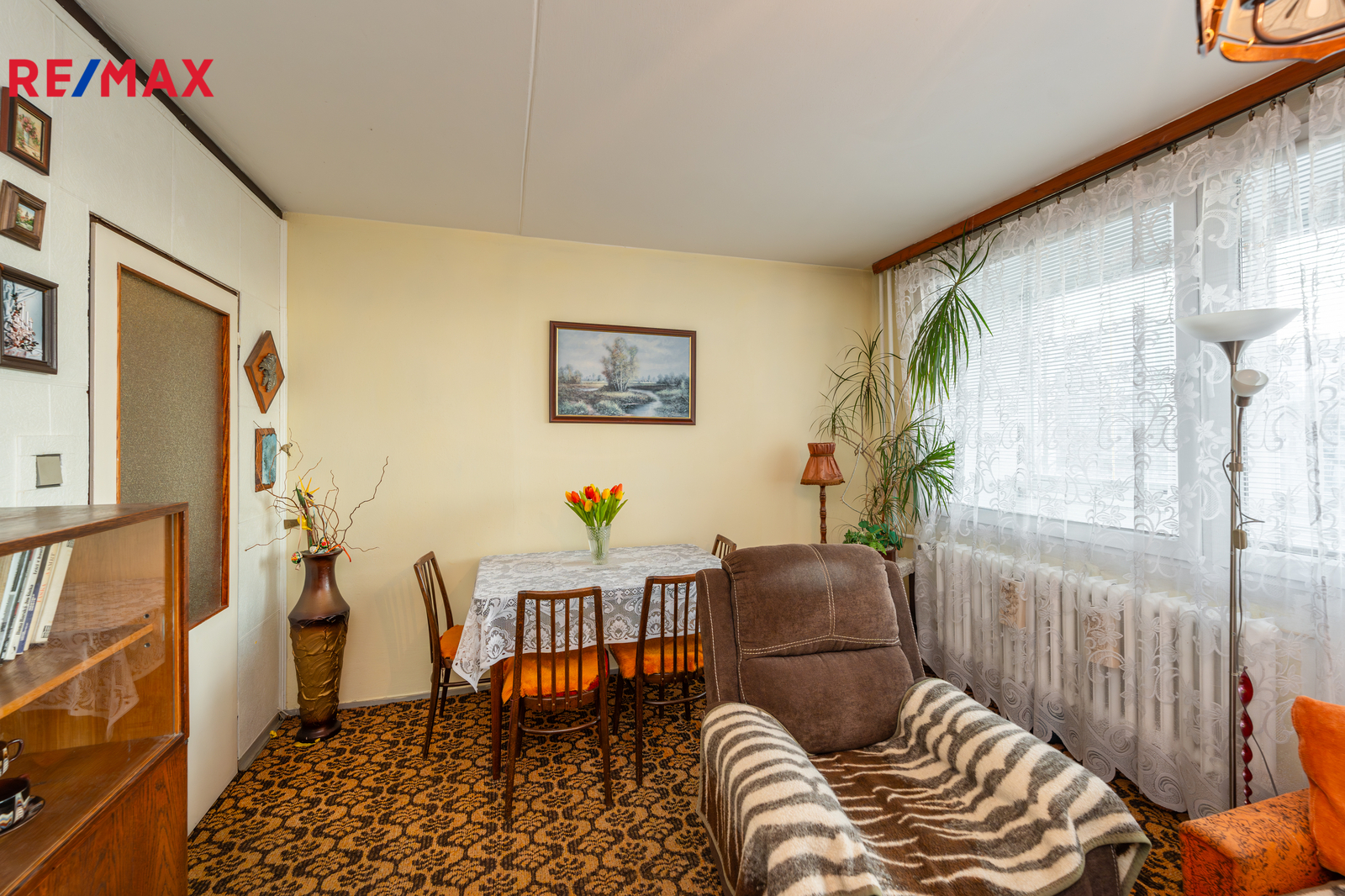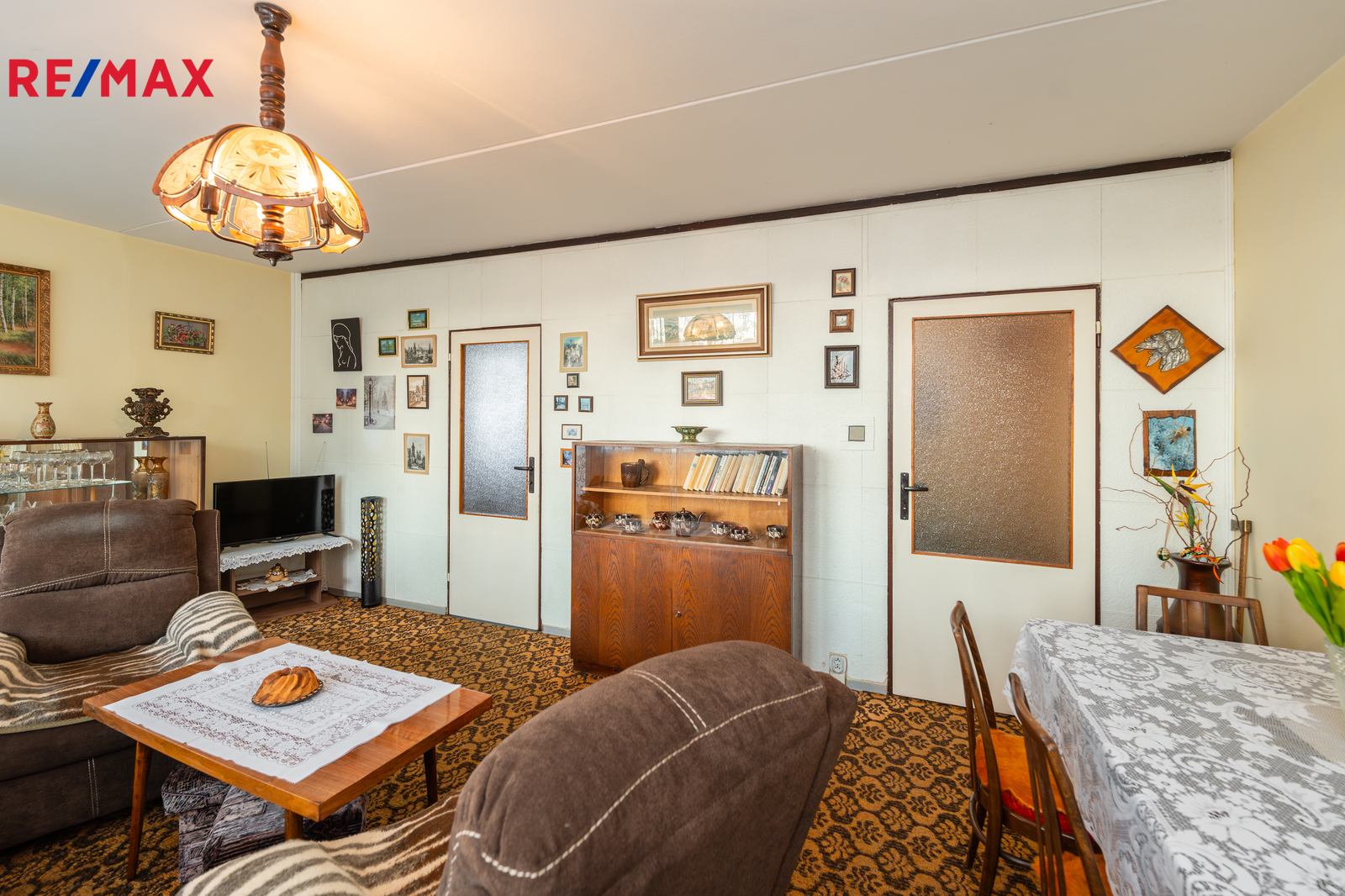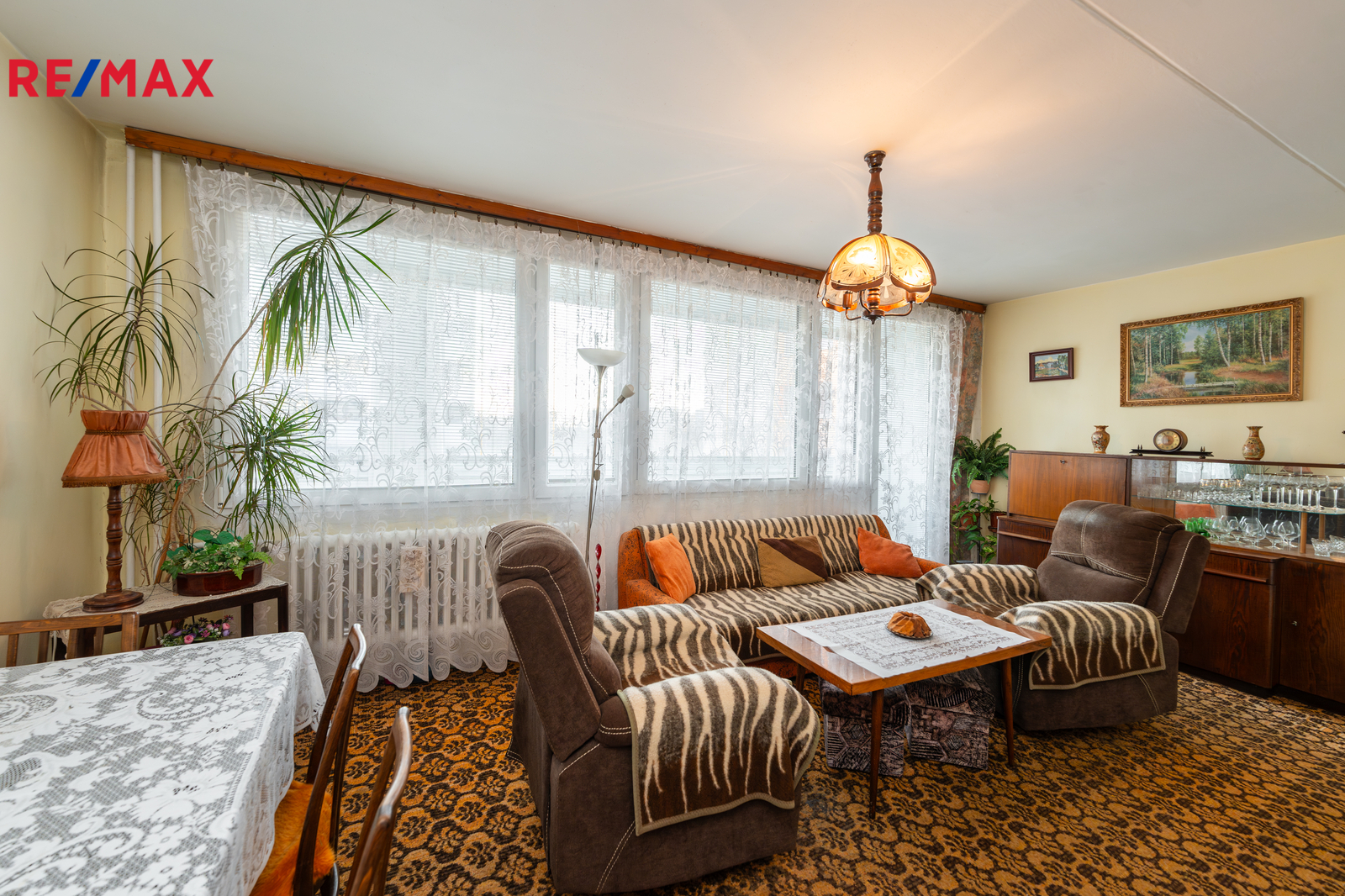 Jednotka je v původním, udržovaném stavu a je obývána prvními majiteli až do současnosti. Byt se nabízí kompletně vybavený starším nábytkem, což umožňuje okamžité užívání nebo postupnou rekonstrukci dle vlastních představ. Velká okna v každé místnosti zajišťují dostatek světla a podtrhují vzdušnost celého prostoru. Pro lepší orientaci a představu jsme nechali zpracovat půdorys a vizualizace možného budoucího stavu interiéru.