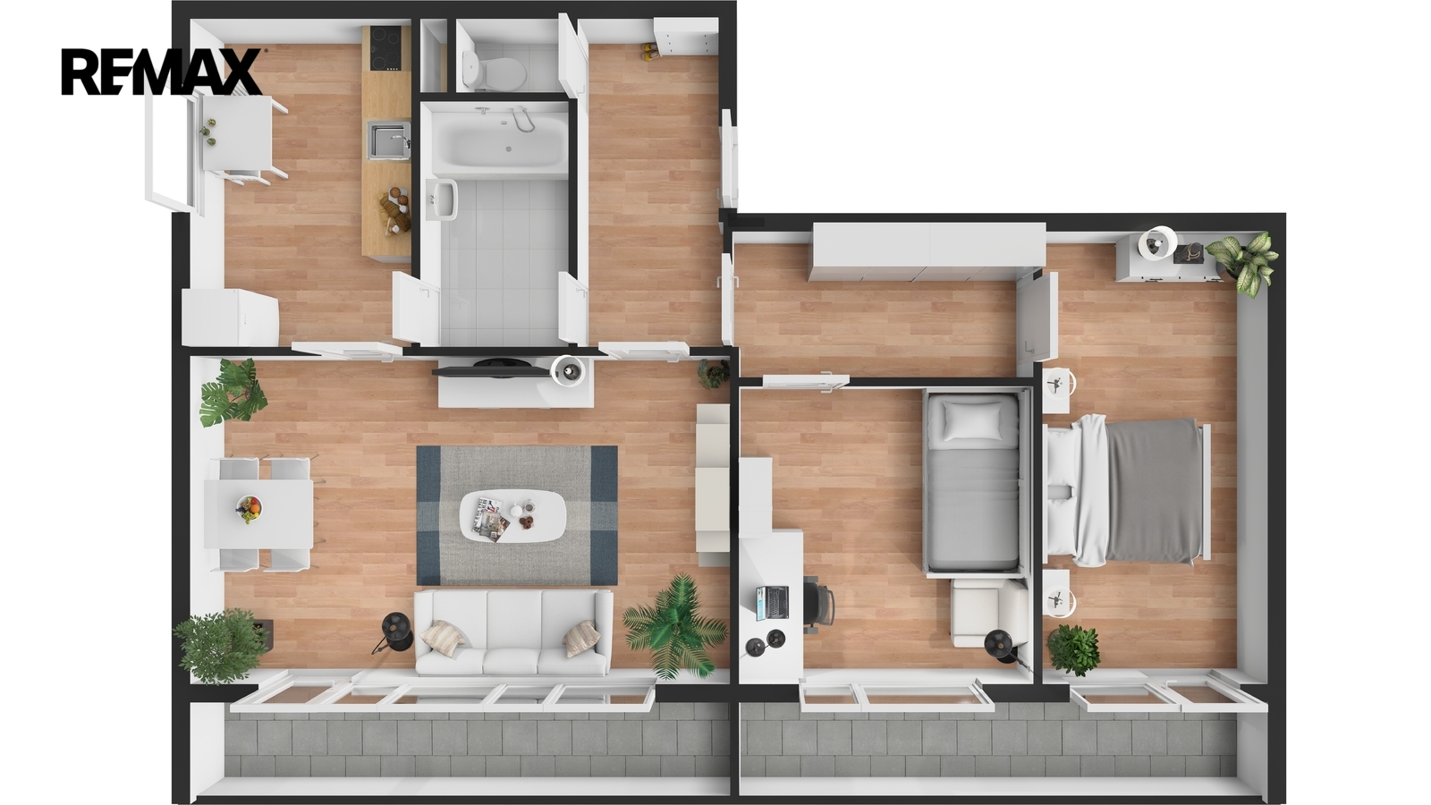 Jednotka prošla před lety částečnou rekonstrukcí, kdy se realizovalo zděné bytové jádro, nová koupelna a kuchyň včetně nových rozvodů v této části. Vše ostatní je původní. Byt je v dobrém stavu, vyklizený a připravený k okamžitému nastěhování. Pro lepší orientaci a představu jsme nechali zpracovat půdorys a vizualizace možného budoucího stavu interiéru.