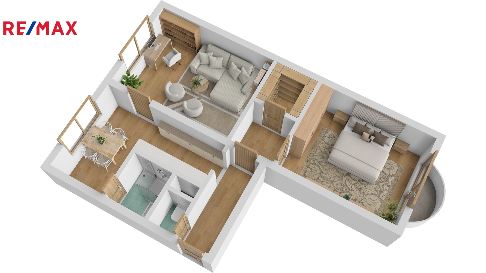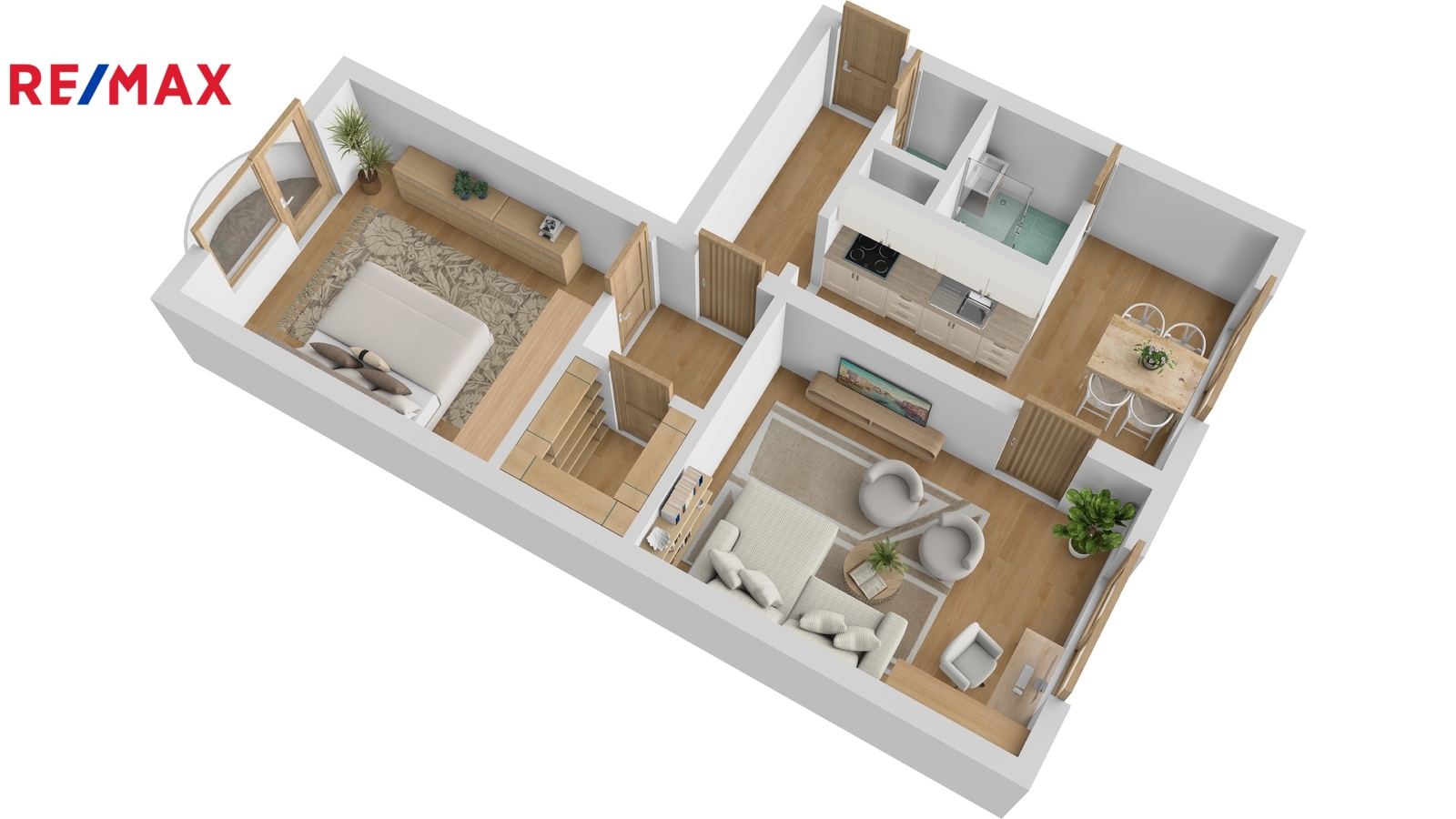 Velkou výhodou je rekonstruované bytové jádro z roku 2014 s koupelnou se sprchovým koutem, umyvadlovou skříňkou a samostatnou toaletou. Dispozice bytu je praktická a poskytuje dostatek úložného prostoru – v předsíni se nachází věšáková stěna a navazující šatna, kterou lze využít i jako menší komoru.