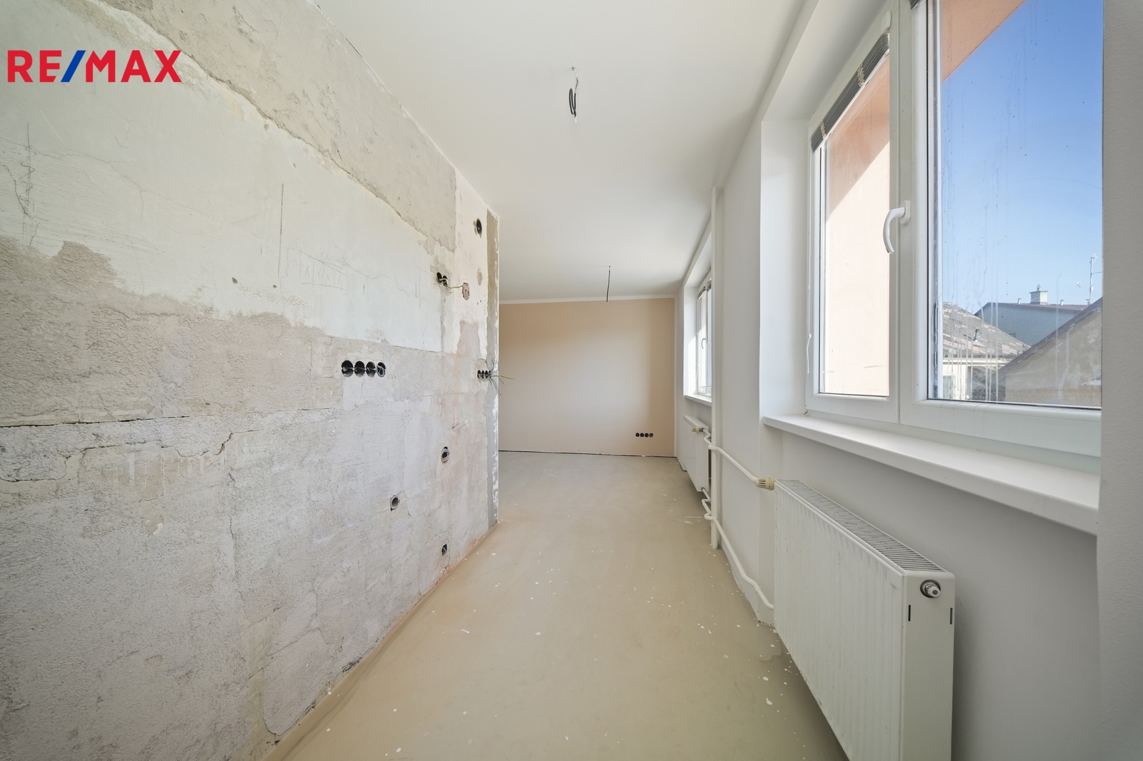 Byt nabízí dva pokoje s výměrami 18m2 + 11m2, a prostorný obývací pokoj s kuchyňským koutem o velikosti 22m2 a oddělenou koupelnu s toaletou. Prošel rozsáhlou rekonstrukcí v podobě, nových rozvodů elektřiny, vody a odpadů, úpravou vnitřních příček, podlah. V tuto chvíli k dokončení rekonstrukce zbývá pouze osadit zásuvky, obložky dveří a umístit kuchyňskou linku. Toto vše nabízí novému majiteli možnost finální úpravy dokončit dle svých představ.