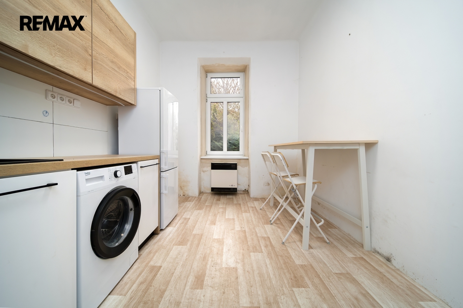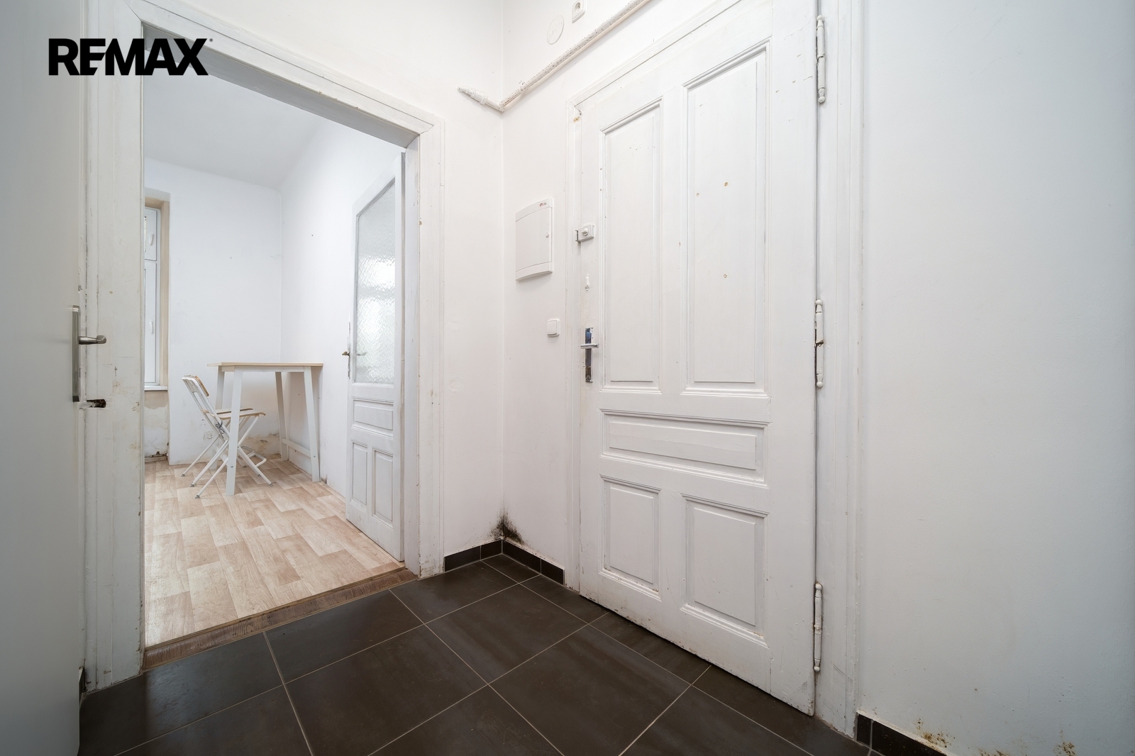 Byt je vhodný k rekonstrukci a nabízí jasně definovaný rozsah prací. Hlavní položkou je sanace vlhkosti v podlaze a zdech — na ni je již zpracován kompletní projekt, který bude předán novému majiteli. Elektrické rozvody jsou měděné, doplněné o nový jistič a proudové chrániče. Byt se prodává částečně vybavený.