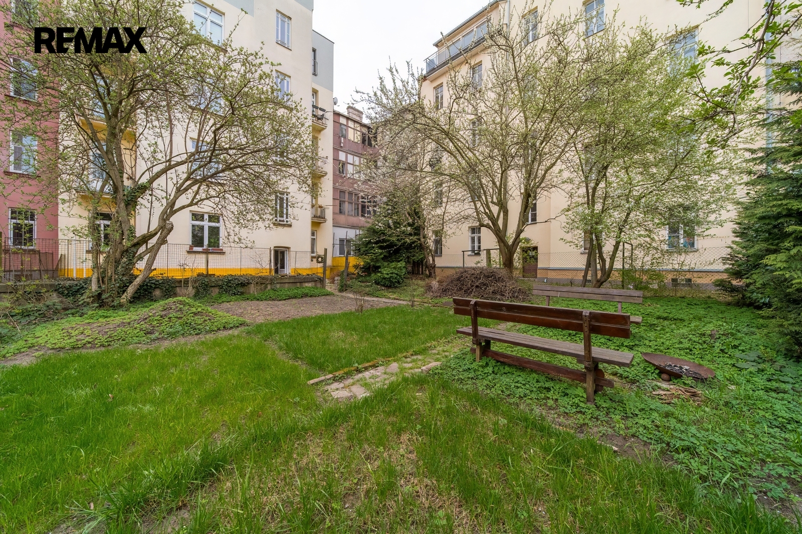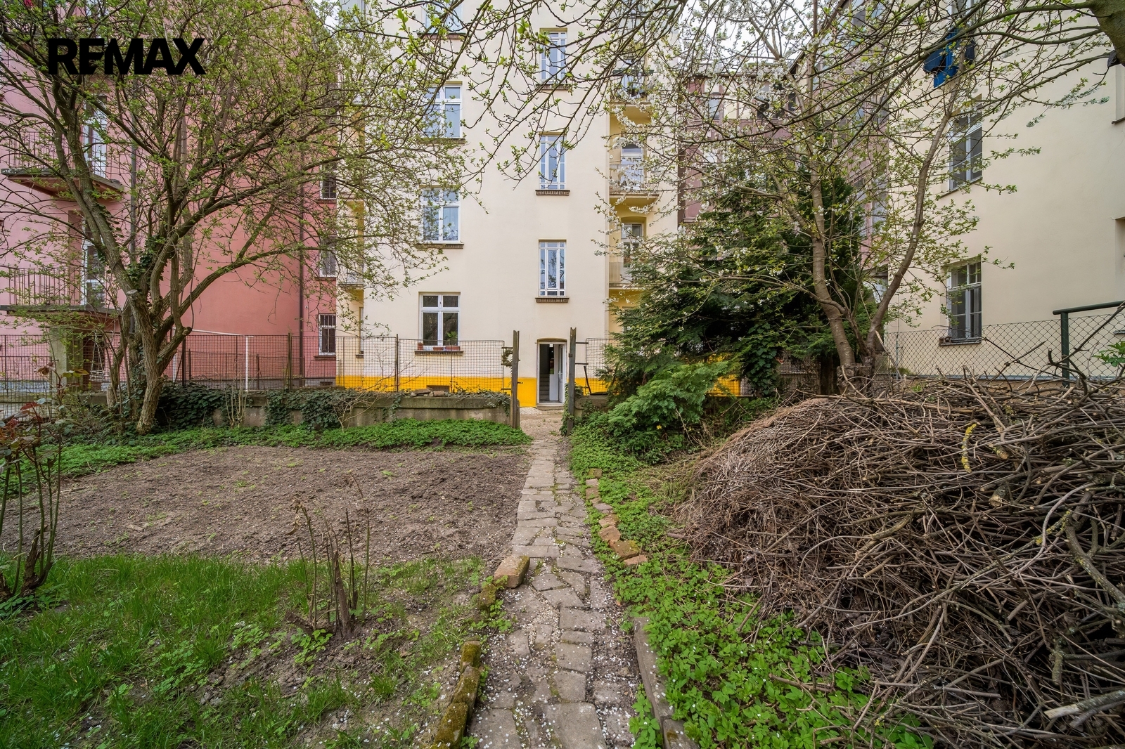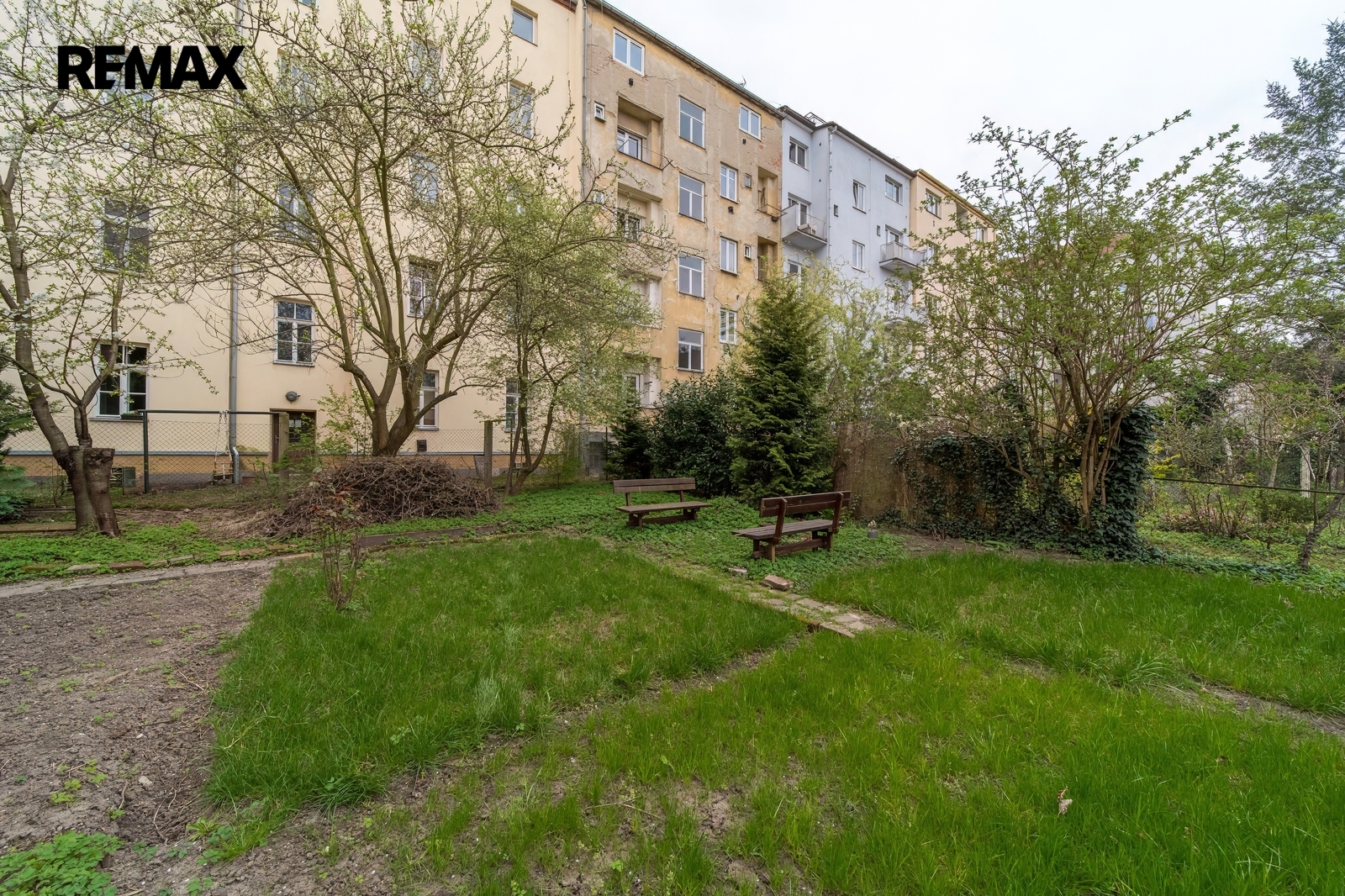 Pro klidné chvíle bez ruchu nabízí dům přístup na společnou zahradu v uzavřeném vnitrobloku — volně k dispozici pro všechny obyvatele.