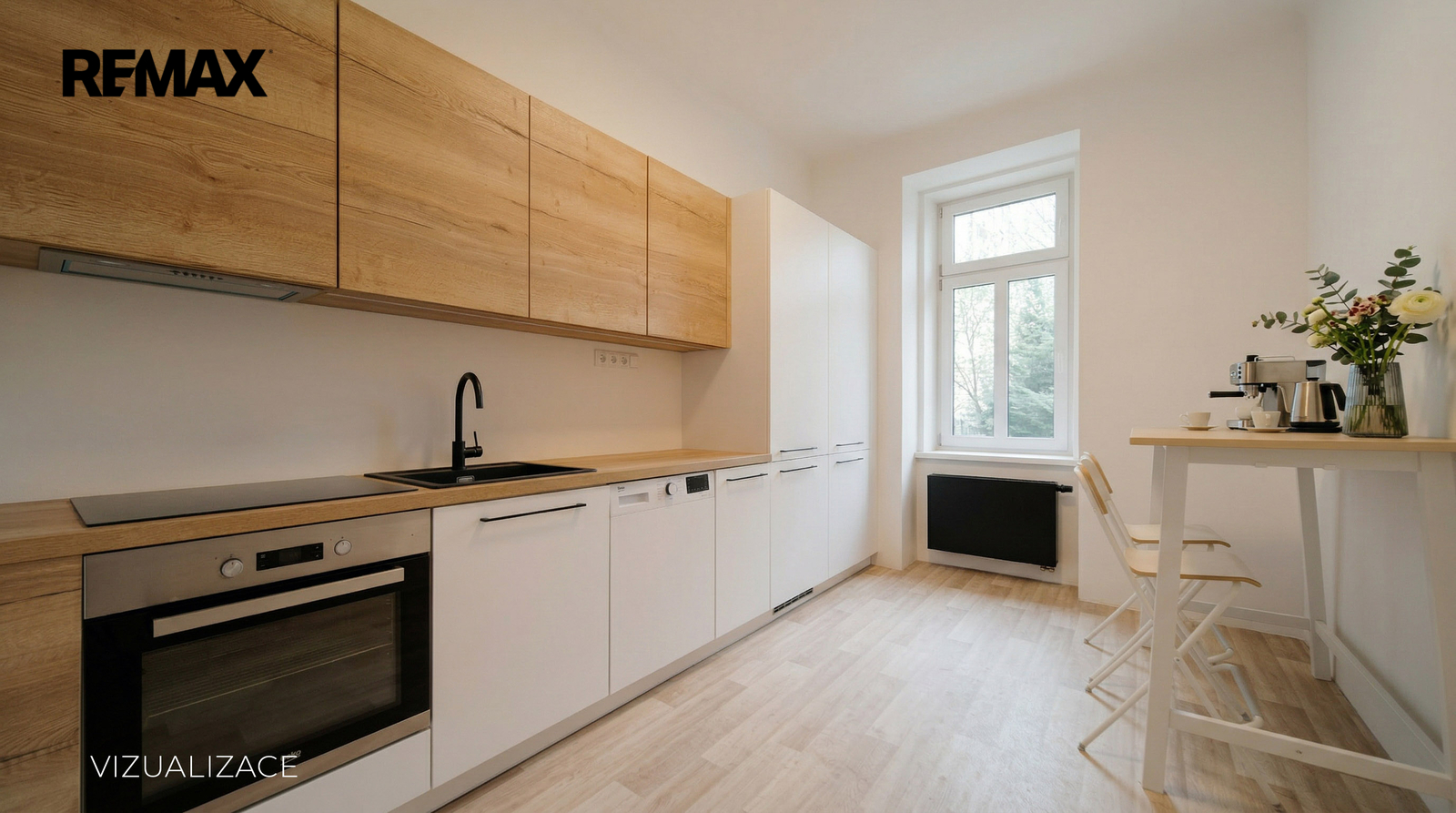 Aktuálně byt vytápějí plynové vafky, které doporučujeme v rámci rekonstrukce zrušit a přejít například na elektrické podlahové vytápění. Ohřev vody zajišťuje elektrický bojler.