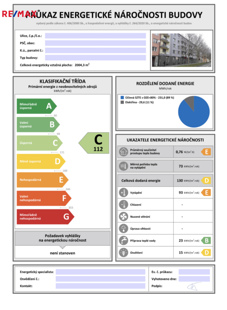 Bytový dům je po revitalizaci dle PENB skupiny C - Úsporný, disponuje výtahem.