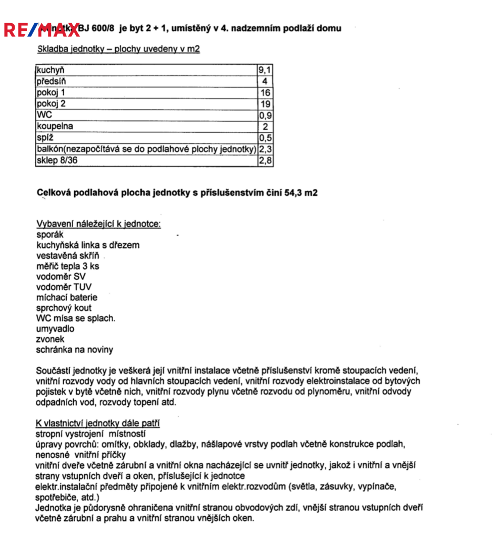 Dle prohlášení vlastníka je užitná plocha bytu 51 m2 + Balkon 2,3 m2 | Sklepní koje 2,8 m2.