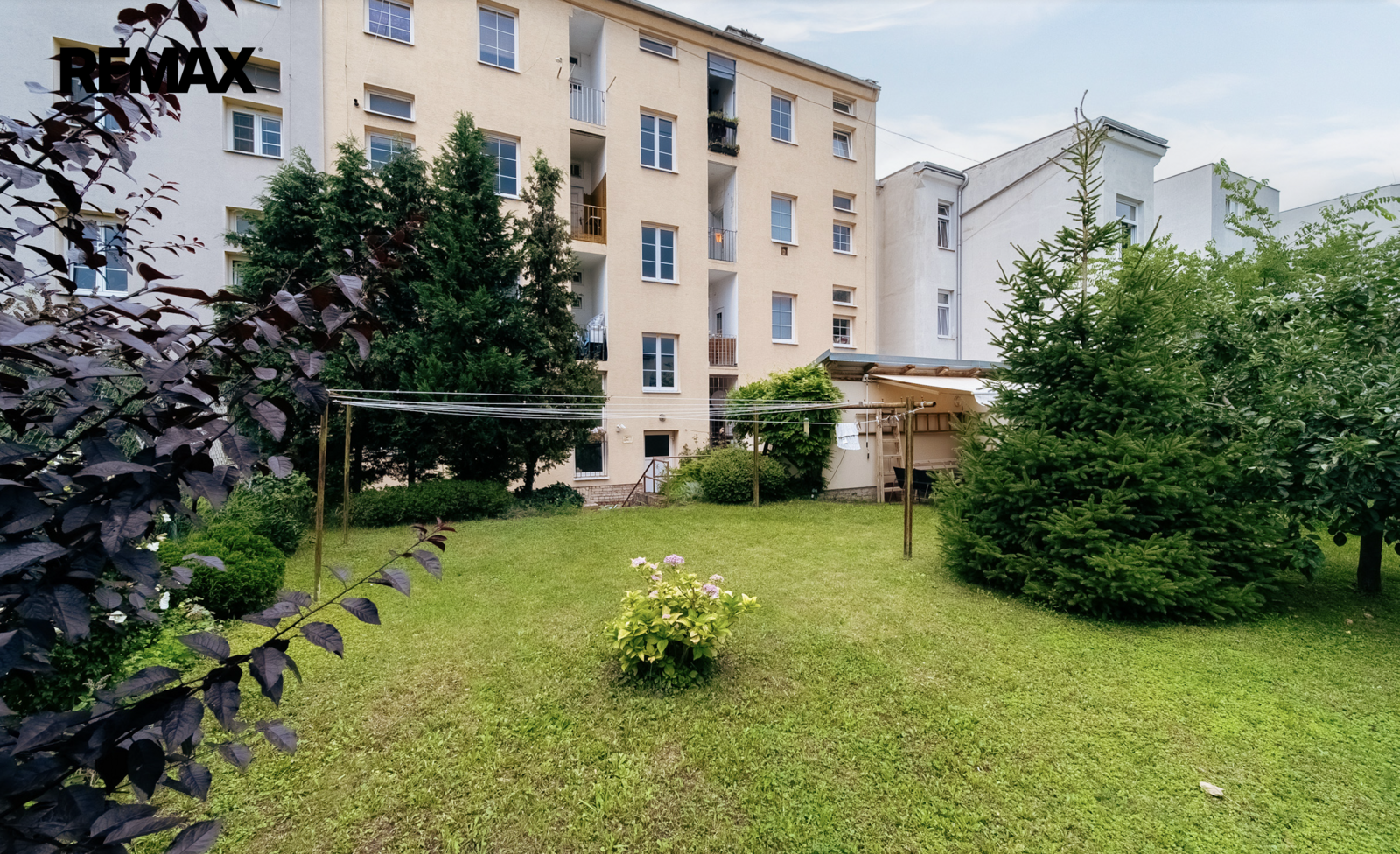 Klidný vnitroblok a malebná zahrada vytvářejí ideální prostor pro odpočinek, posezení i příjemné chvíle s rodinou či přáteli v zeleni přímo u domu.