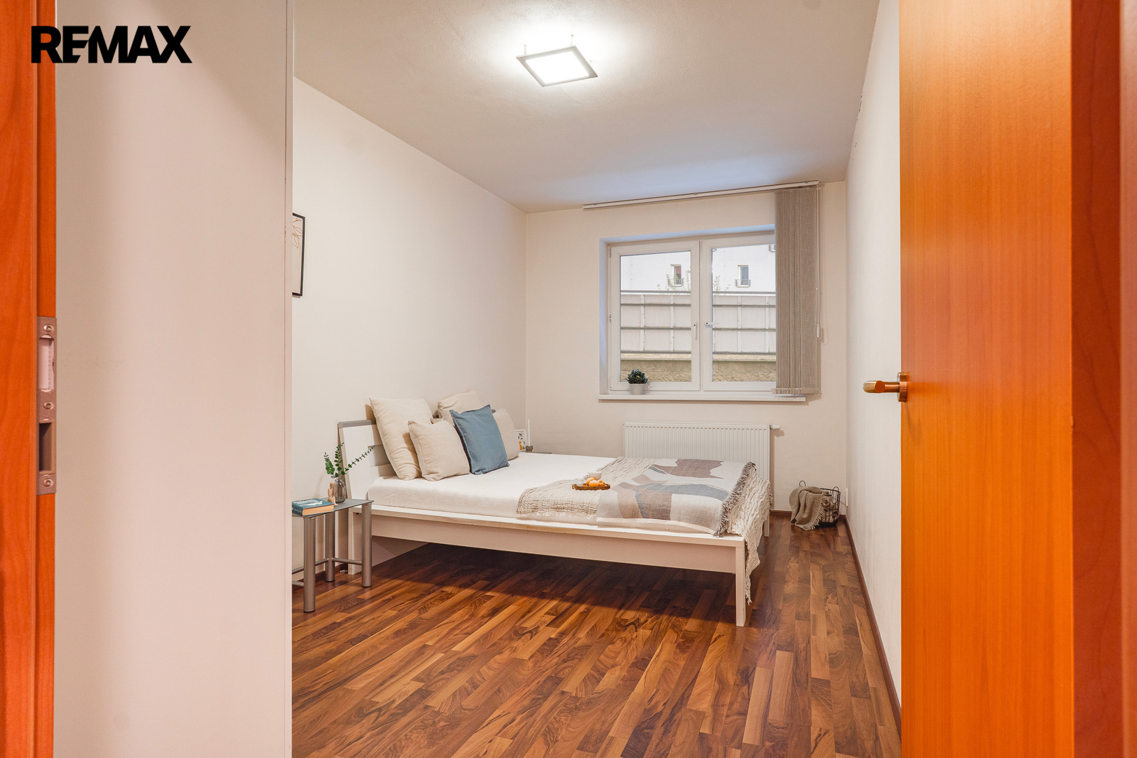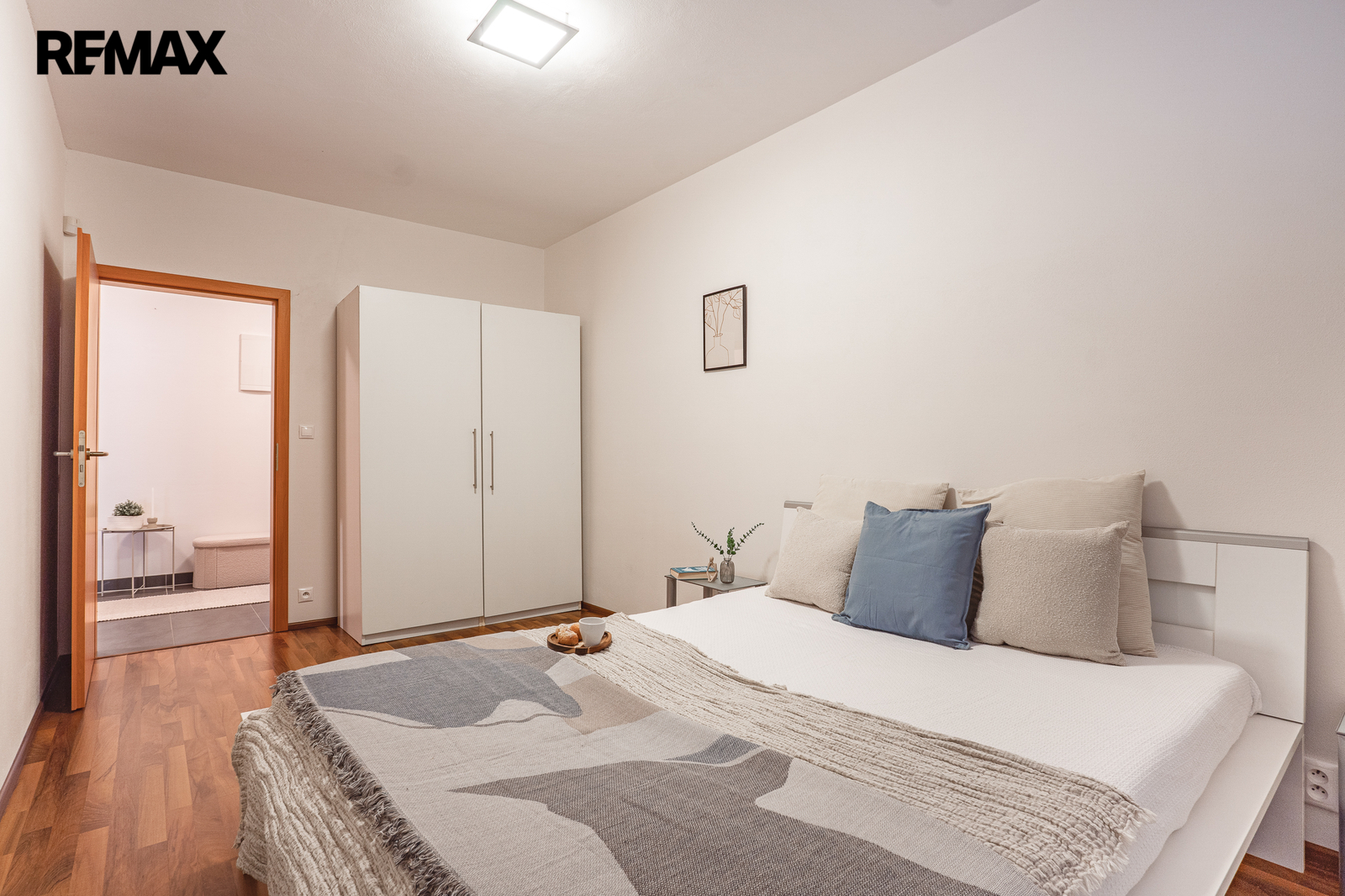 Ložnice je klidná a poskytuje ideální zázemí pro odpočinek. Samozřejmostí je koupelna s vanou a praktická vstupní chodba s dostatkem místa pro vestavěné skříně.