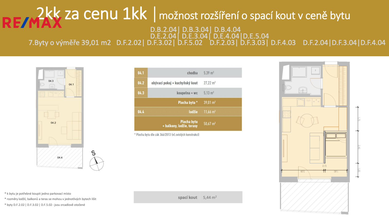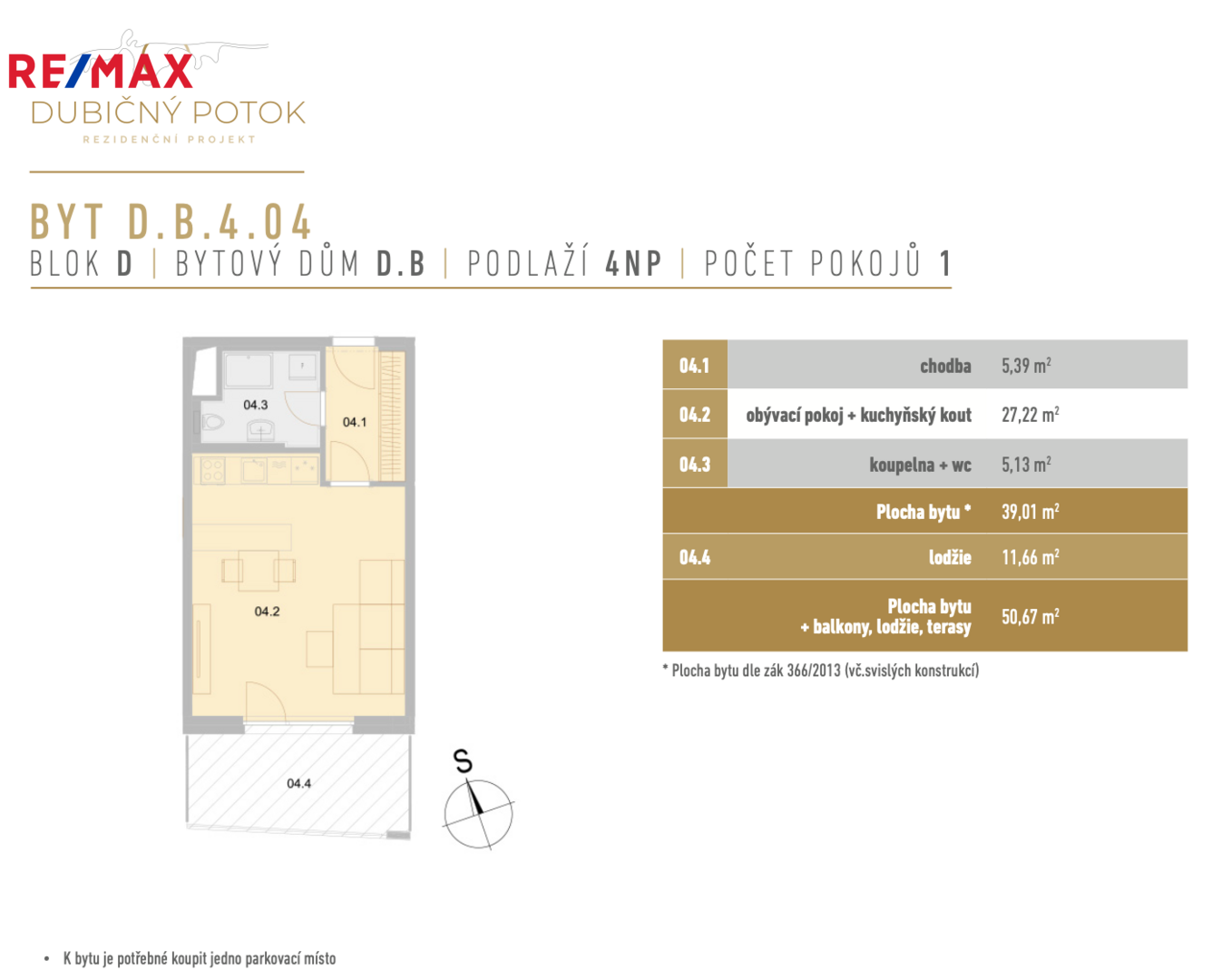 Nabízíme bytovou jednotku D.B.4.04. Dispozice 2+kk za cenu 1+kk o celkové výměře 50,67 m2 vás nadchne svým komfortem a luxusním životním stylem. U vybraných bytů vám totiž nabízíme možnost úpravy dispozic formou příčky bez navýšení ceny. Touto úpravou si oddělíte spací prostor od obytné místnosti.