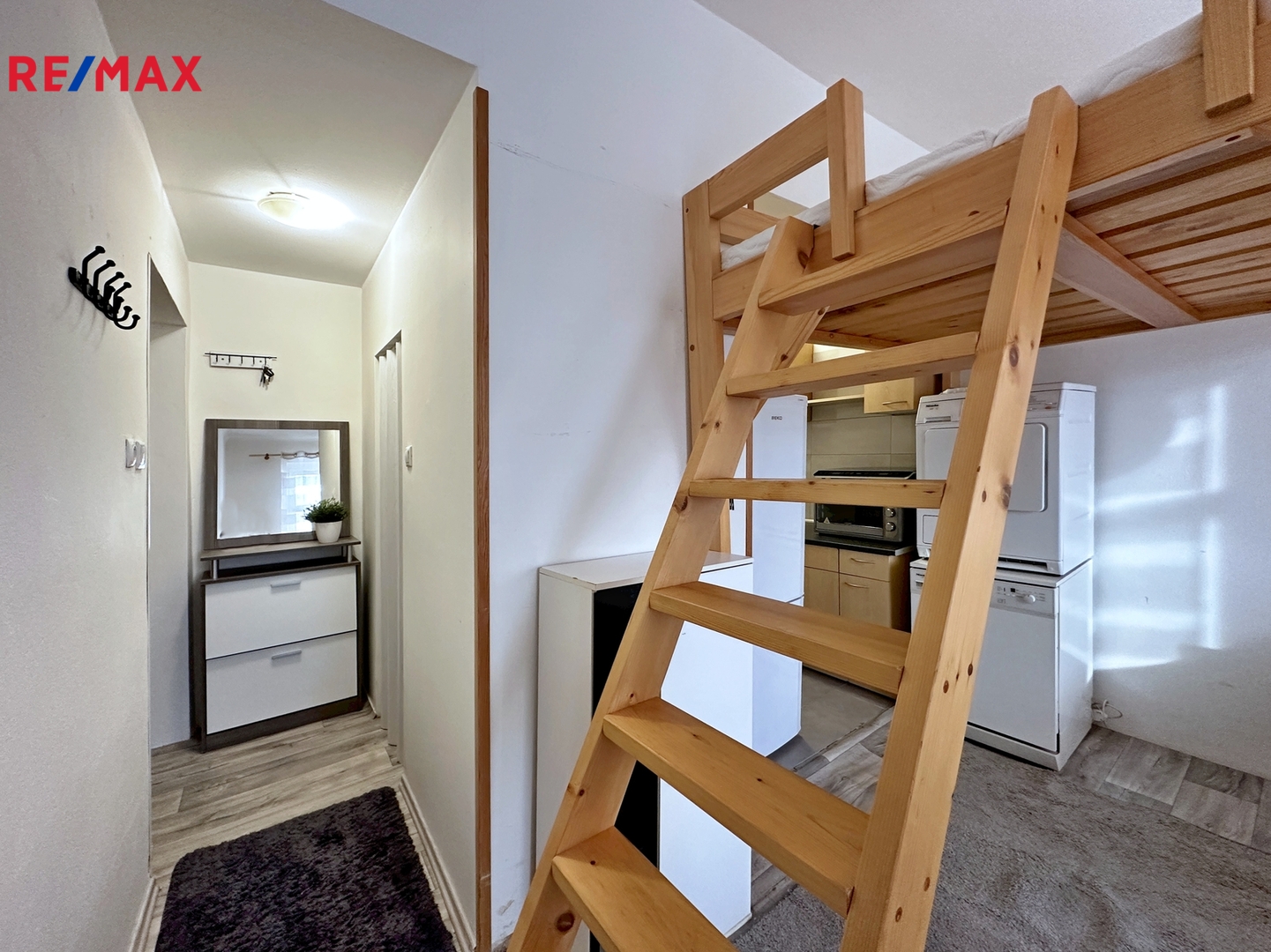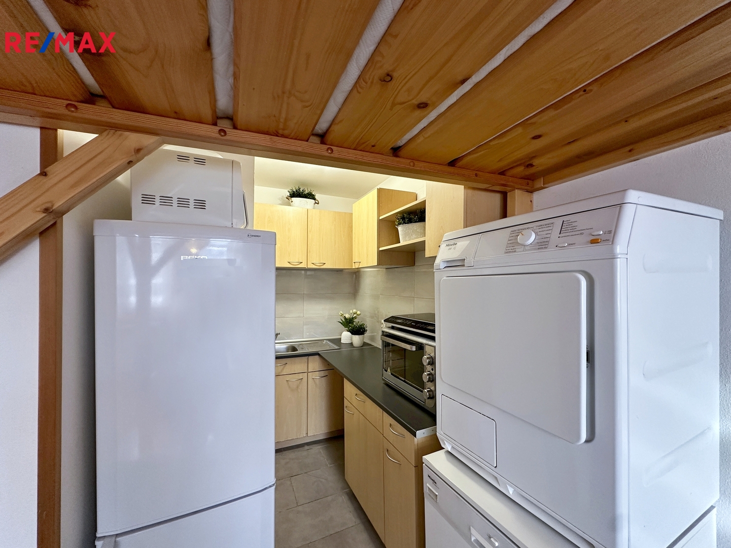 V mezipatře náleží k bytu komora, která dříve sloužila na uskladnění potravin.