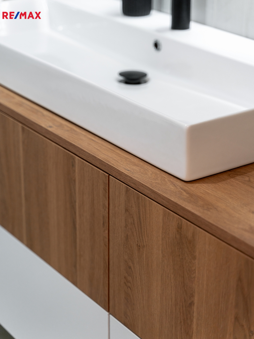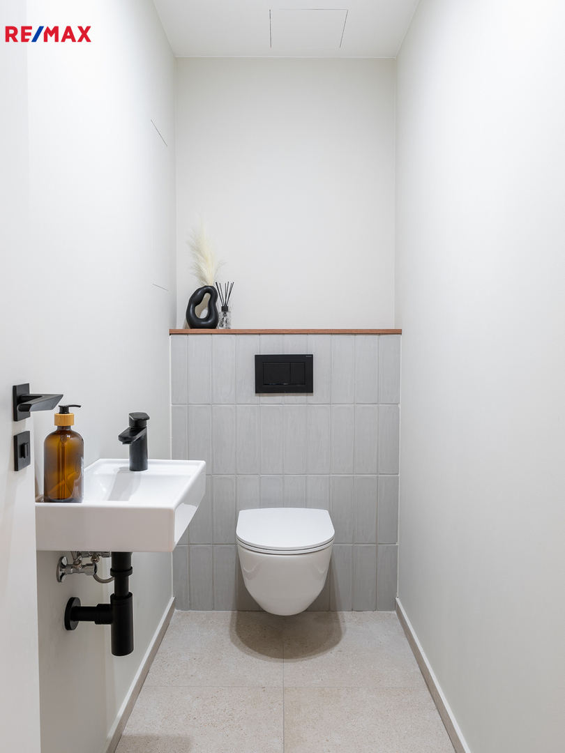 V bytě najdete prémiové materiály a značky: dubové podlahy s podlahovým vytápěním, vnitřní dveře SAPELI model Elegant Komfort s rozetovými klikami FO-NAXOS-HR, koupelnu a WC zařízené dlažbou a obklady zn. RAKO, nábytkovými umyvadly Sapho Kare s bateriemi Hansgrohe Vernis, sprchovou zástěnou zn. Hűppe, sanitou zn. Hansgrohe, WC systémem zn. Geberit, okna s trojsklem Otherm ALFA EVO.