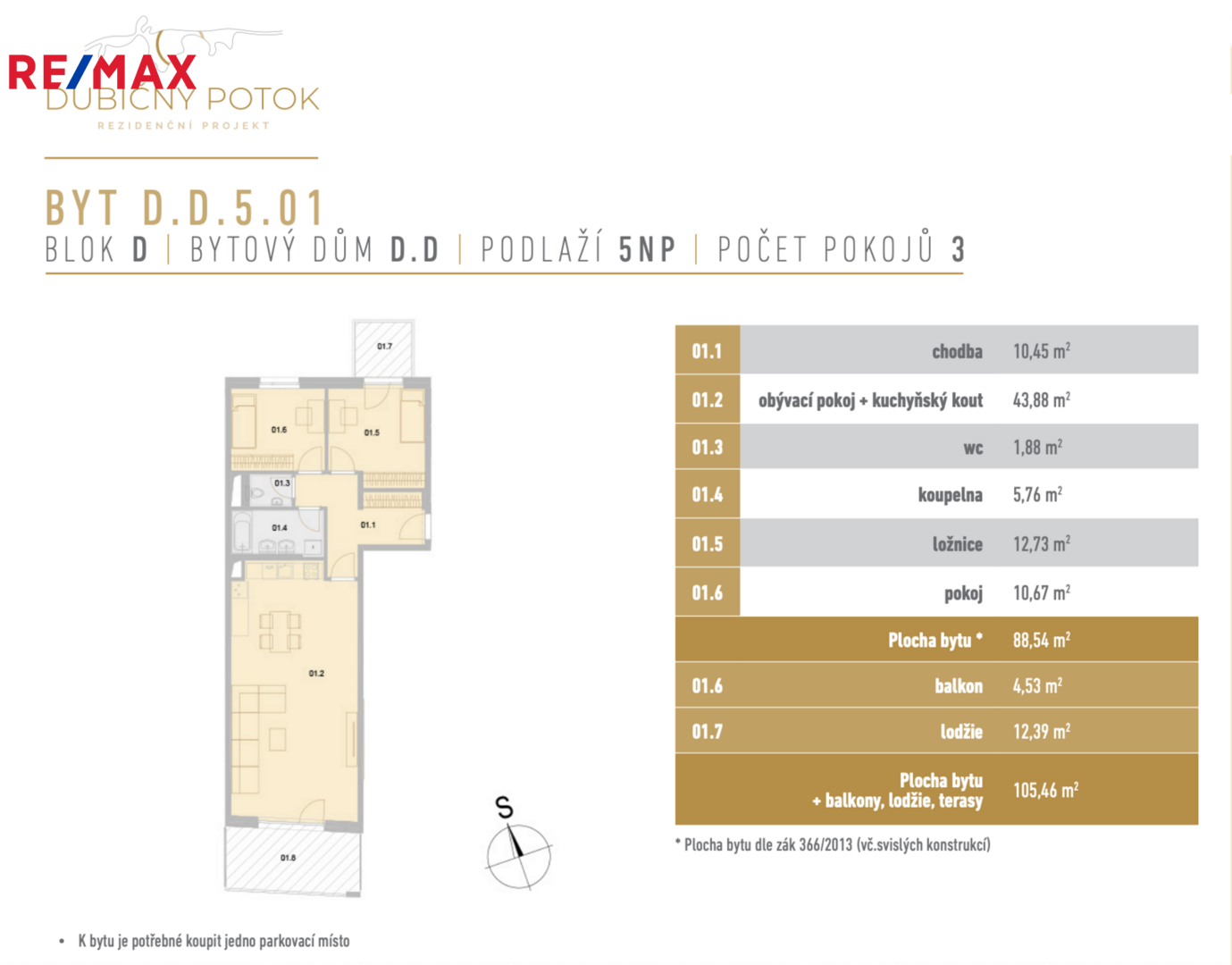 Nabízíme exkluzivní bytovou jednotku 3+kk D.D.5.01 v rezidenci Dubičný Potok v Českých Budějovicích. K prostorné ploše 88,10 m2 náleží balkon o výměře 4,53 m2 a lodžie 12,39 m2. Byt je připraven k okamžitému nastěhování.