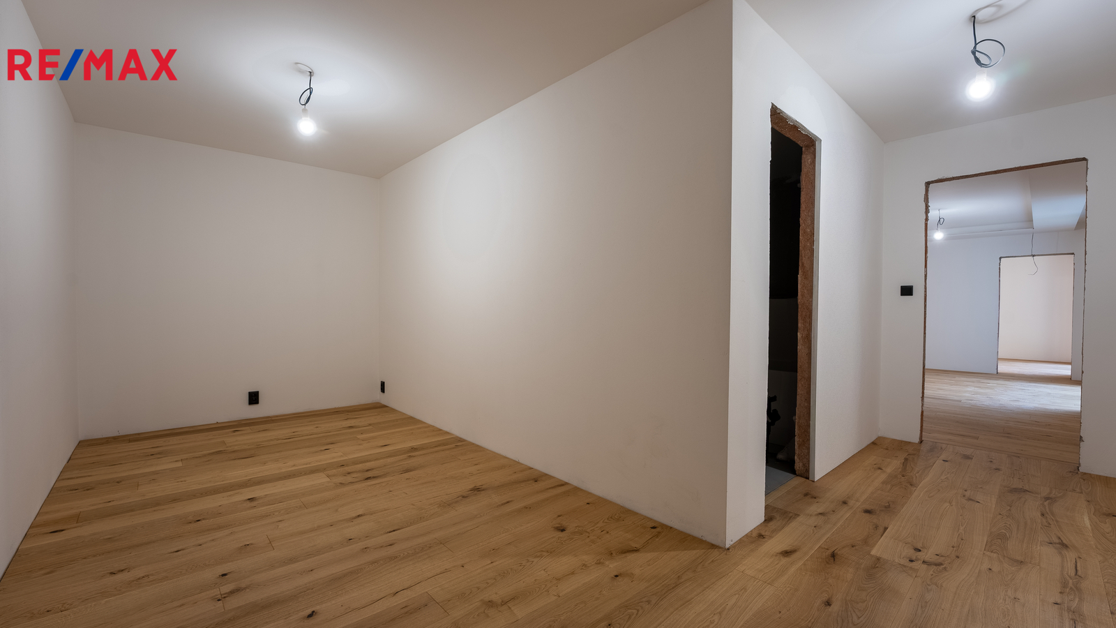 Už při vstupu vás přivítá mimořádně prostorná předsíň o velikosti 18 m², která bez problémů funguje jako velkokapacitní šatna. U pokoje se nachází další samostatná místnost – ideální jako walk-in šatna, pracovna, fitness nebo hobby místnost.