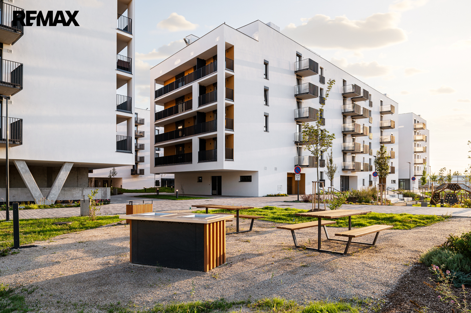 Veřejné prostranství je navrženo udržitelně – zelené střechy spolu s atriem pomáhají optimalizovat mikroklima budov. Milovníci sportu ocení přímou návaznost na cyklostezku, kolárnu a myčku kol.