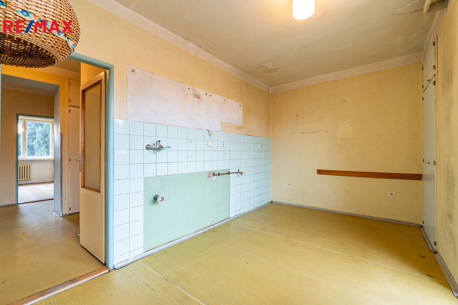 Byt v osobním vlastnictví s podlahovou plochou 98 m² se nachází ve 2. nadzemním podlaží bytového domu z roku 1980 bez výtahu. Dispozičně je rozdělen na obývací pokoj, dvě neprůchozí ložnice, kuchyň, předsíň, koupelnu a samostatnou toaletu. První lodžie je přístupná z kuchyně, druhá lodžie má vstup z jedné z ložnic. Byt je v původním stavu, plně vyklizen a připraven k rekonstrukci dle vlastních představ. Umožňuje tak vytvořit nové uspořádání prostoru, moderní design i technické prvky přesně dle vašich požadavků. Příslušenstvím bytu jsou dvě lodžie o celkové výměře 8,14 m² a sklep o výměře 4,98 m².