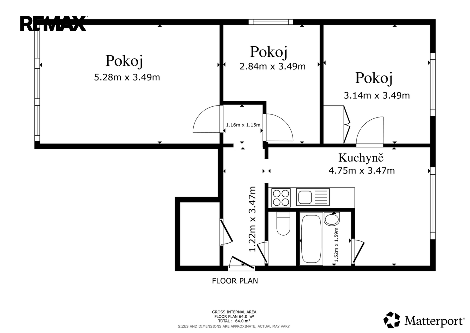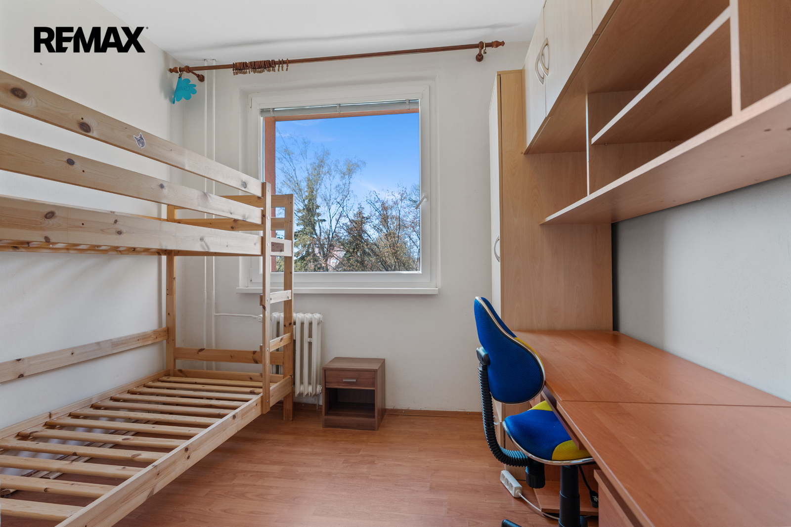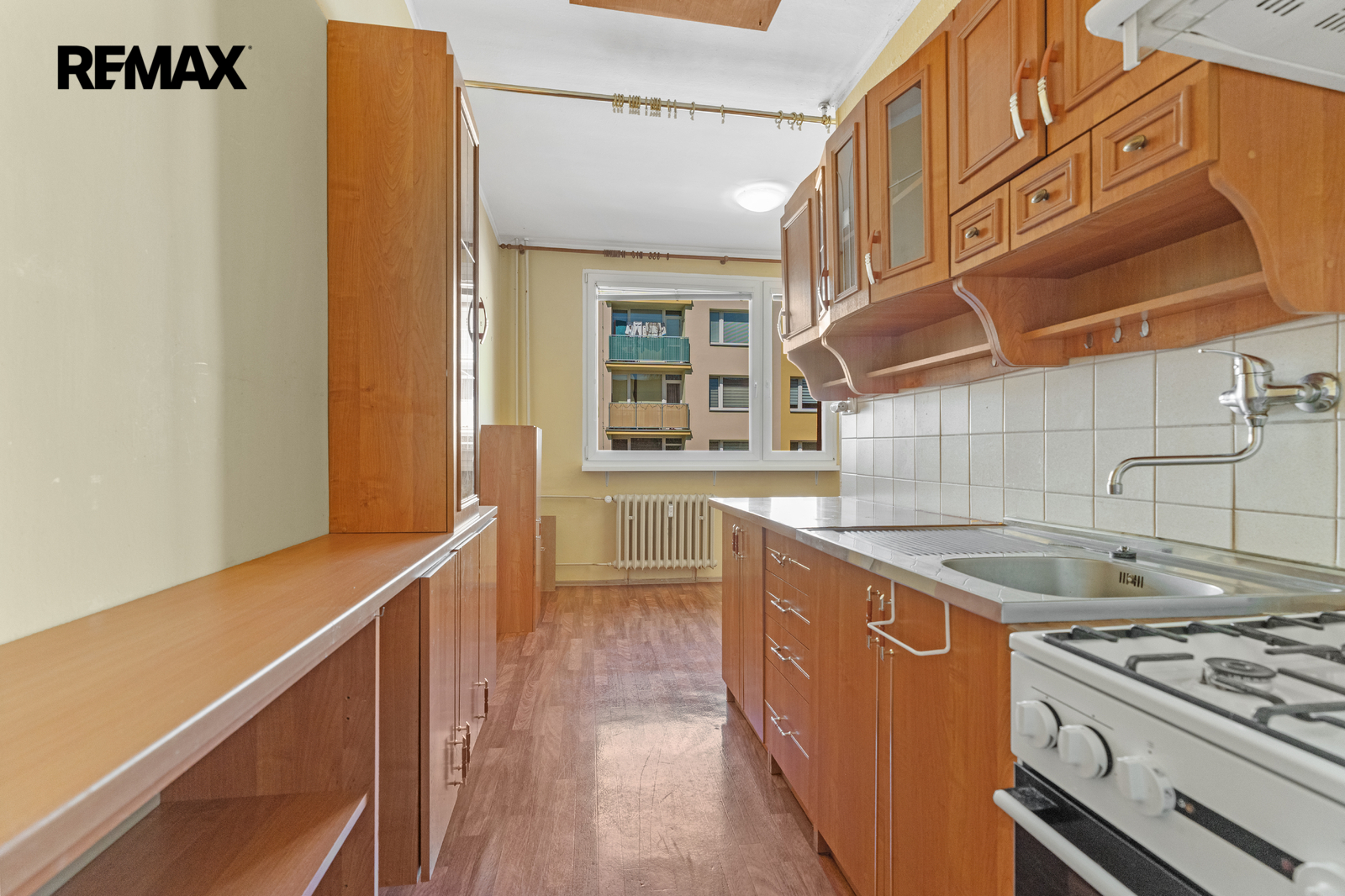 Byt se nachází ve třetím podlaží revitalizovaného panelového domu a díky své dispozici i umístění nabízí skvělý základ pro vybudování moderního rodinného zázemí přesně podle vašich představ. Nabízí se zde nadstandardní množství úložných prostor. Po vstupu se ocitnete v zádveří, ze kterého je přístup na samostatnou toaletu a do praktické komory přímo v bytě. Po pravé straně vstoupíte do kuchyně s původní linkou a plynovým sporákem, ze které se dále prochází do koupelny s vanou. Z kuchyně je rovněž přístup do jednoho ze samostatných pokojů. Na konci chodby pak najdete další menší pokoj a prostorný obývací pokoj s plovoucí podlahou, který je díky vstupu na lodžii krásně prosvětlený. K bytu náleží také komora umístěná přímo ve vestibulu, která je náhradou za sklepní koji.