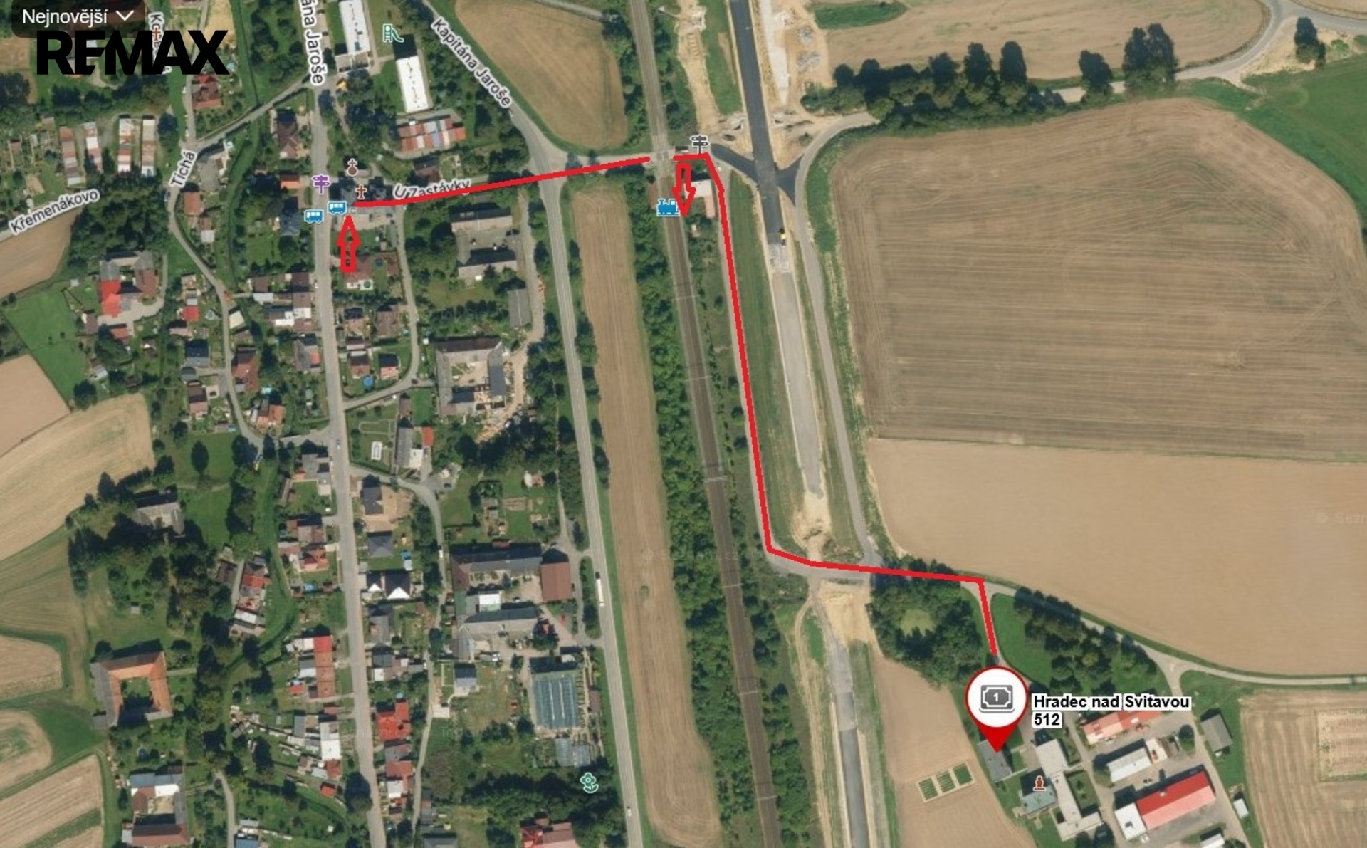 Příjezd k domu je bezproblémový z nového obchvatu sjezdem směrem na Kamennou Horku.