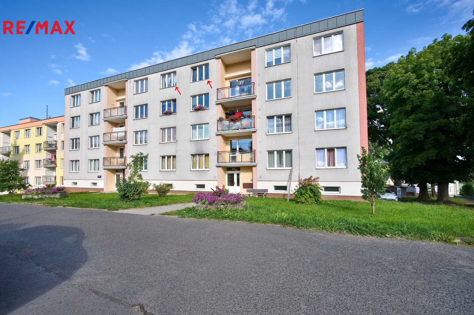 Dům je obklopen zelení, v blízkosti je občanská vybavenost i dobré dopravní spojení.