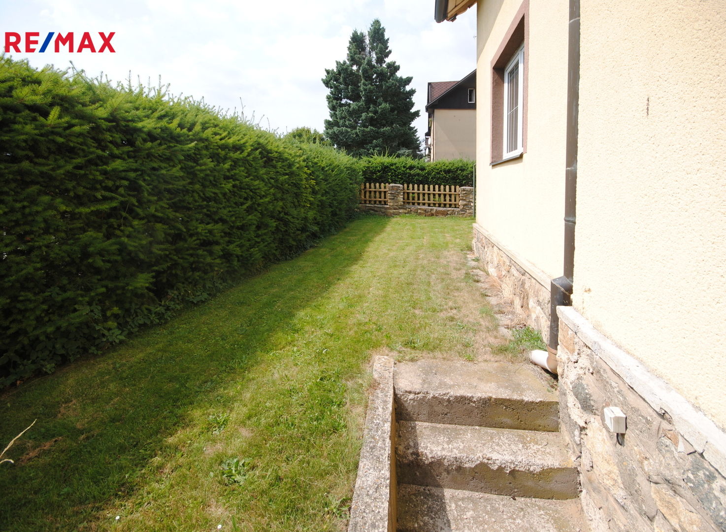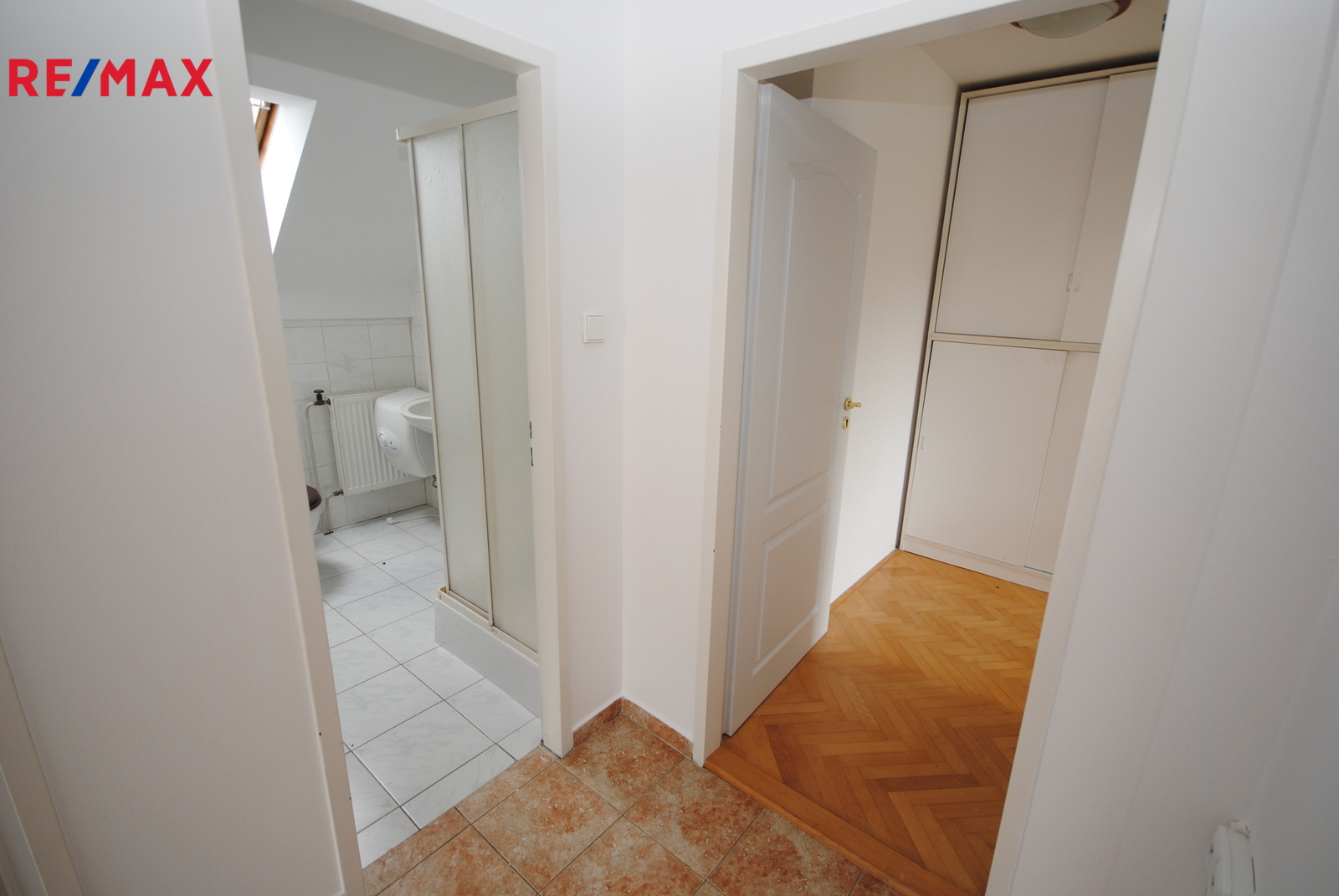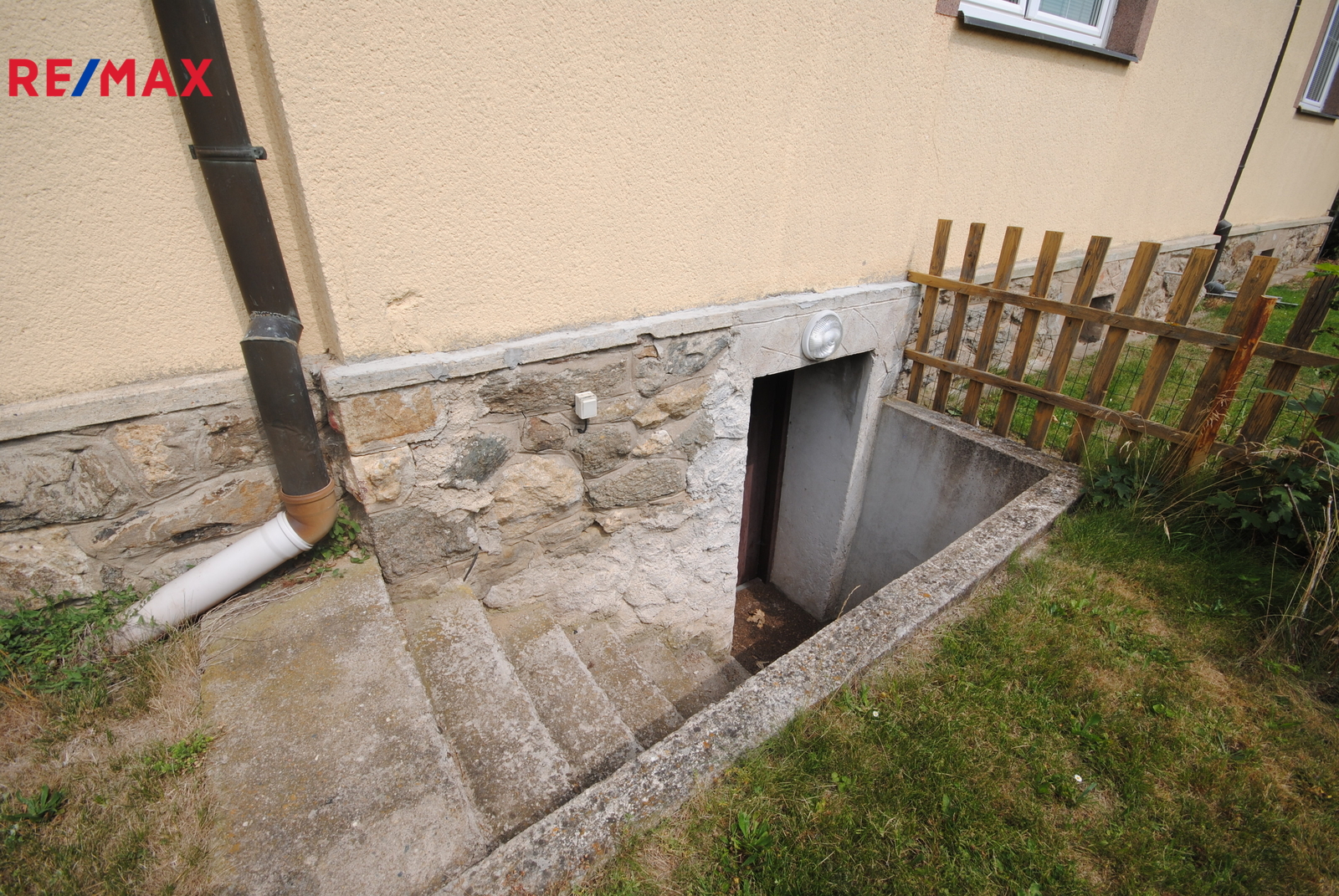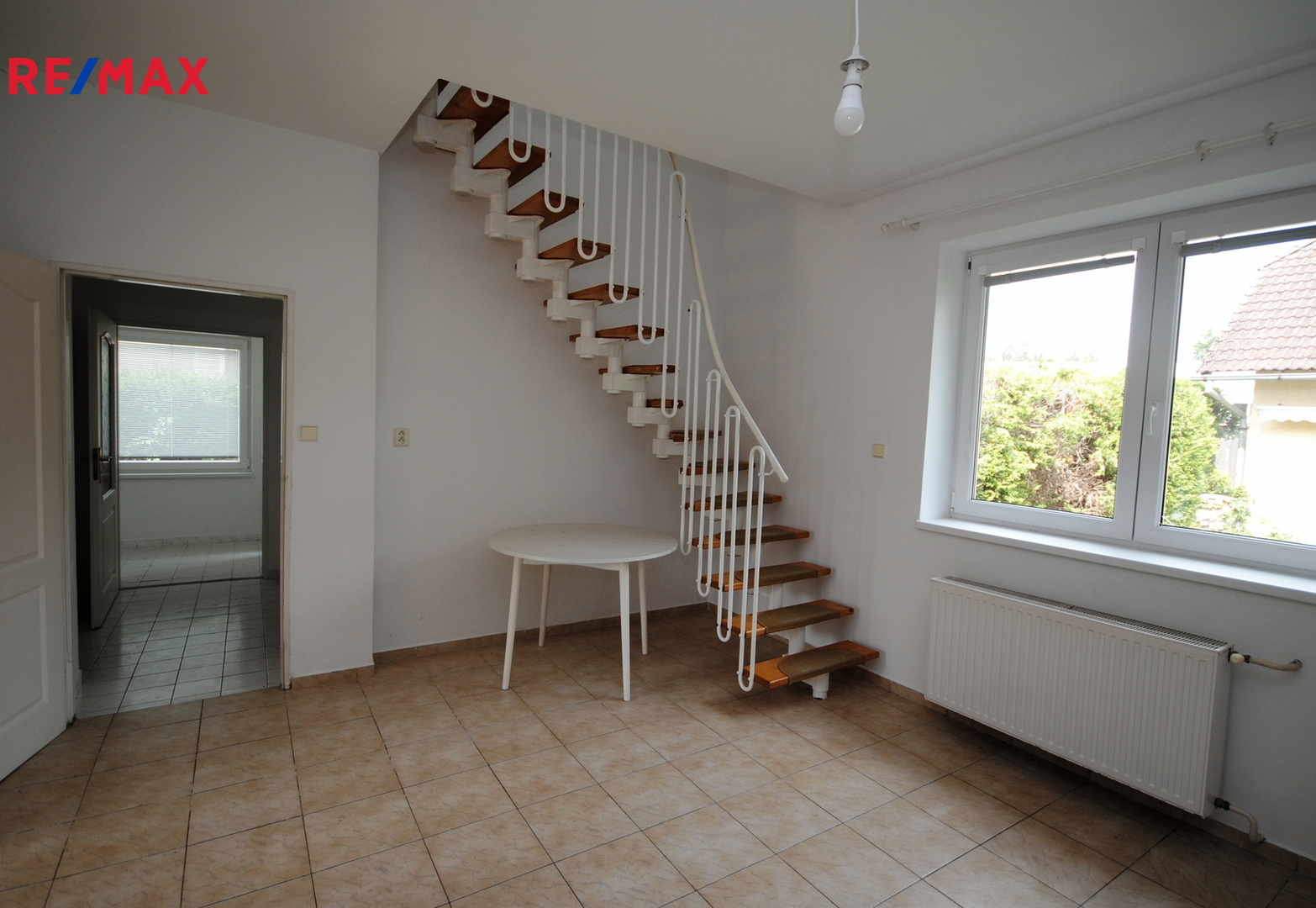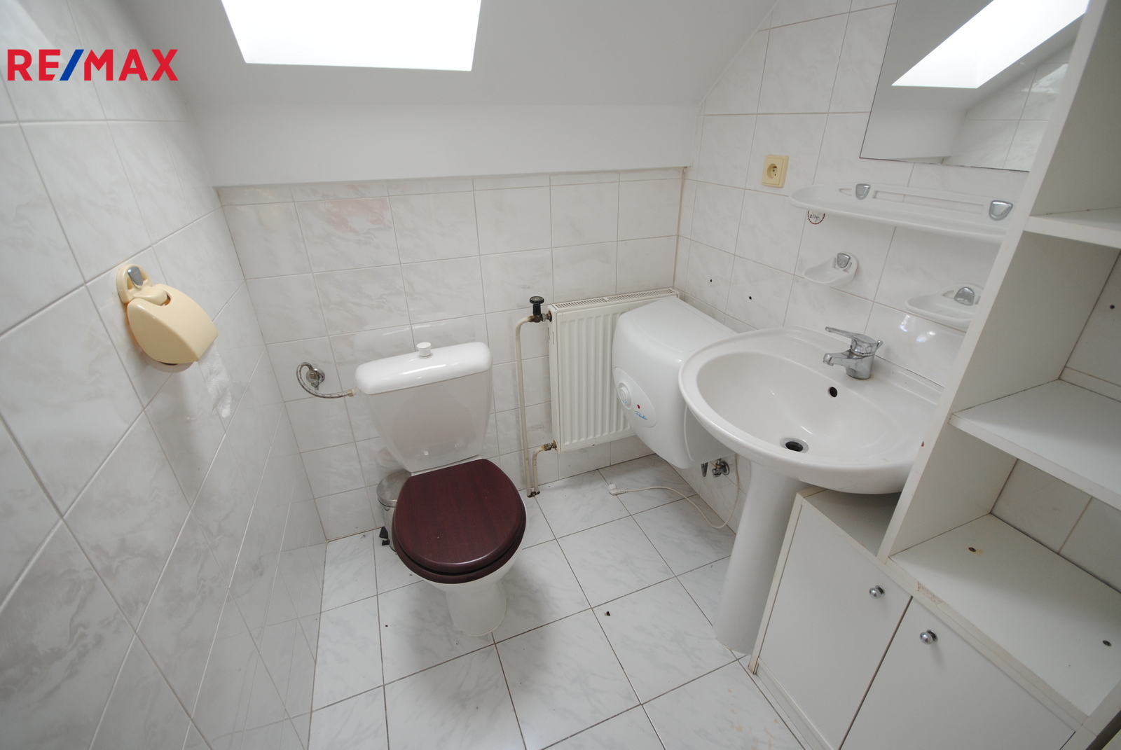 Nabízíme k prodeji mezonetový byt v rodinném domě, který byl prohlášením vlastníka rozdělen na dvě velké, stavebně i provozně zcela oddělené bytové jednotky, každá s vlastním vstupem, zahradou, terasou i sklepem. Reálně tak majitel bydlí v polovině dvojdomku. Prodávaná bytová jednotka má dispozici 4+1 s podlahovou plochou 102 m2, terasu v patře domu o ploše 16 m2 a sklep taktéž o výměře 16 m2. Velkou předností tohoto bytu je oplocená zahrada o celkové ploše 237 m2. Mezonetový byt je situován do přízemí a patra, přičemž přízemí je dispozičně členěno na závětří, vstupní chodbu s komorou, samostatným WC a spíží, na kterou navazuje velkoprostorová obytná kuchyně, samostatný obývací pokoj a koupelna s vanou. Horní podlaží bytu je přístupné po schodišti z prostoru obytné kuchyně a dispozičně nabízí centrální chodbu ze které jsou jednotlivé vchody do dvou větších pokojů a jednoho malého pokojíku a menší koupelny se sprchovým koutem. Taktéž vstup na terasu je z této chodby. Sklepní prostor je využitý především jako kotelna (kotel na dřevo, elektrokotel) a sklad paliva. Ohřev vody zajišťuje elektrický bojler v koupelně.