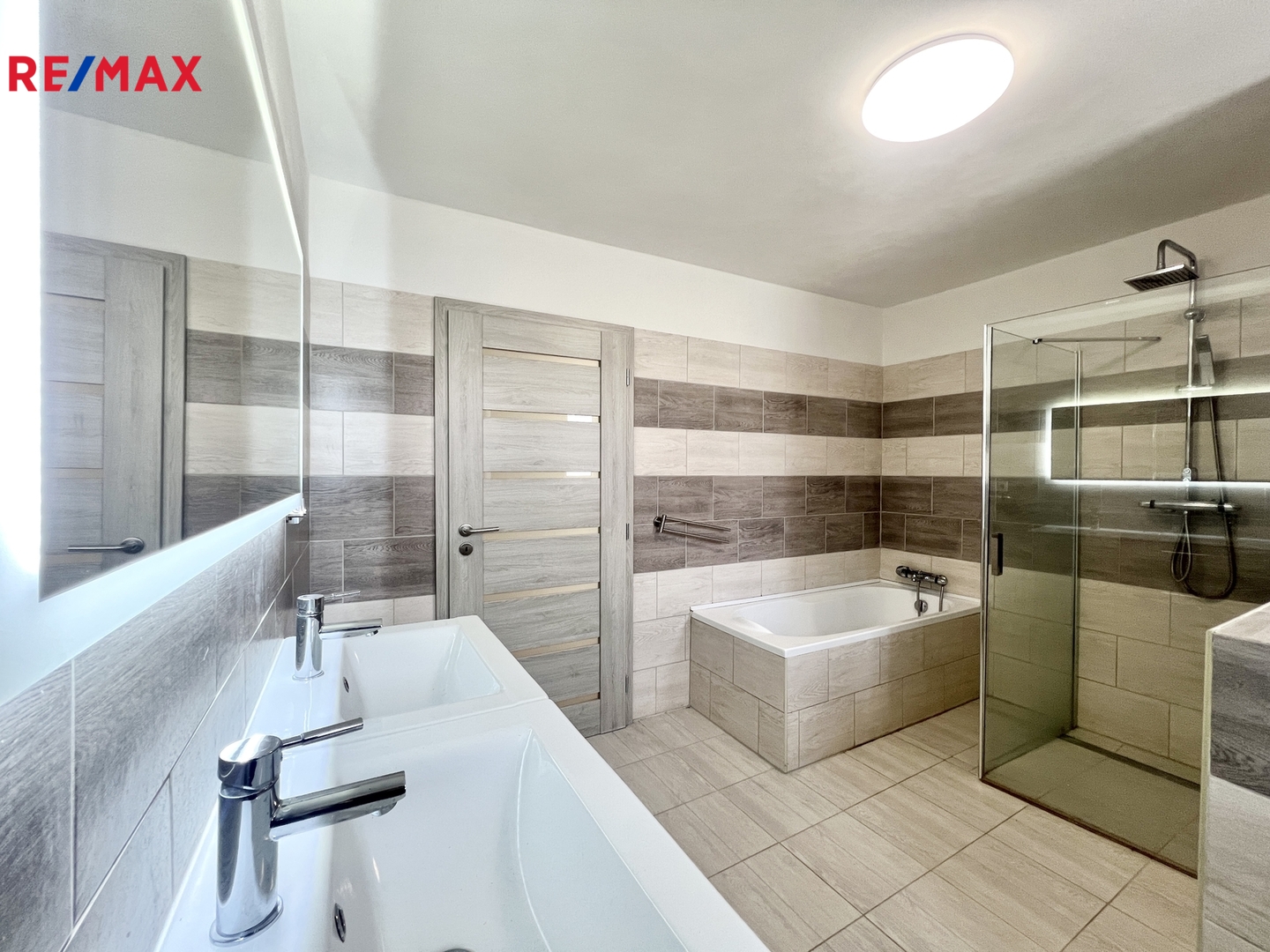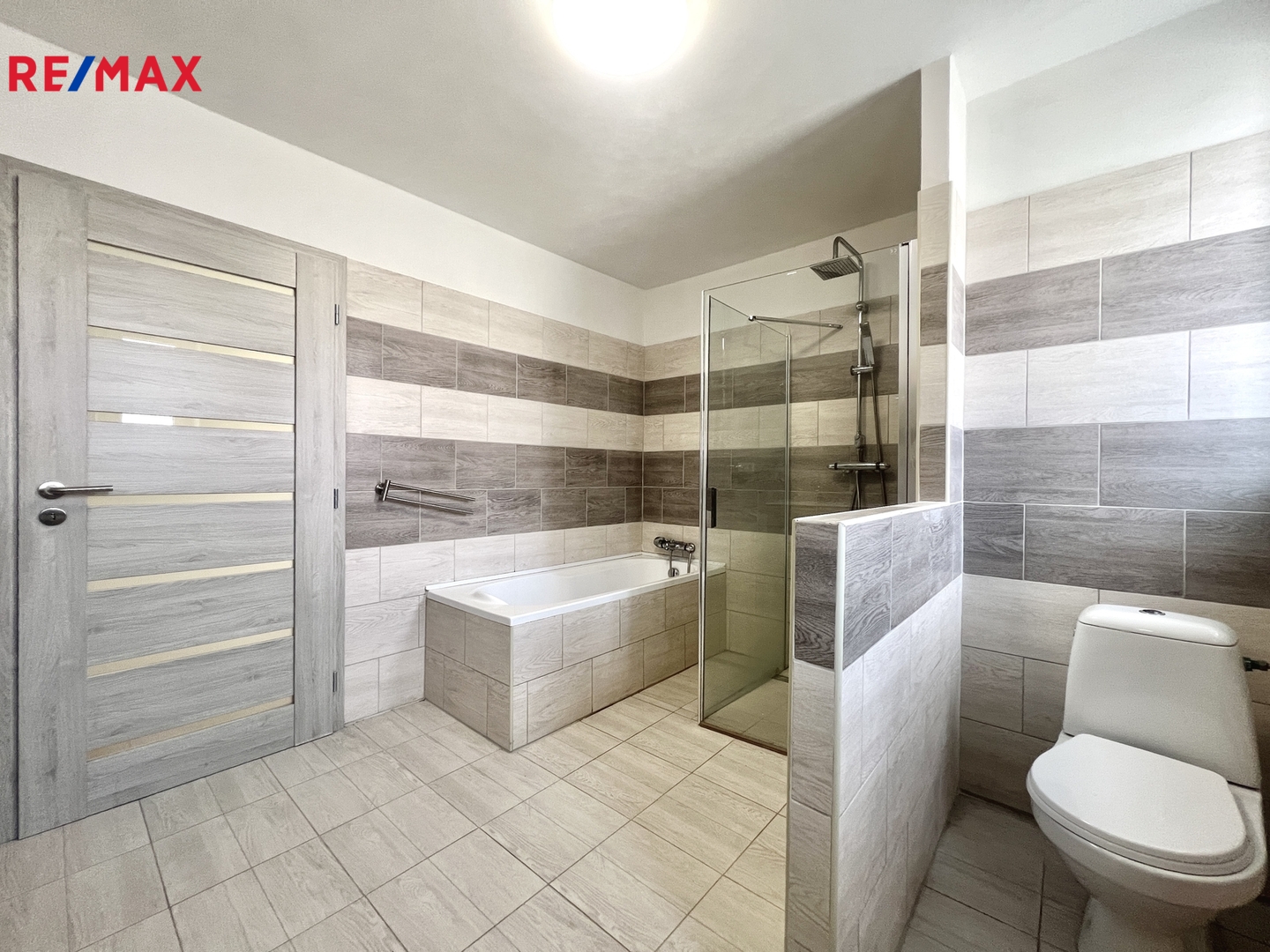 Velkým benefitem je WC s koupelnou s vanou i sprchovým koutem a další samostatná toaleta, což výrazně zvyšuje komfort každodenního bydlení.