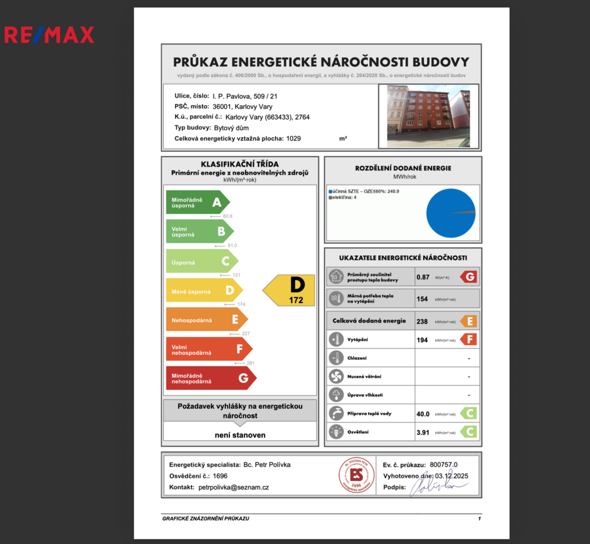 Energetická náročnost budovy: D