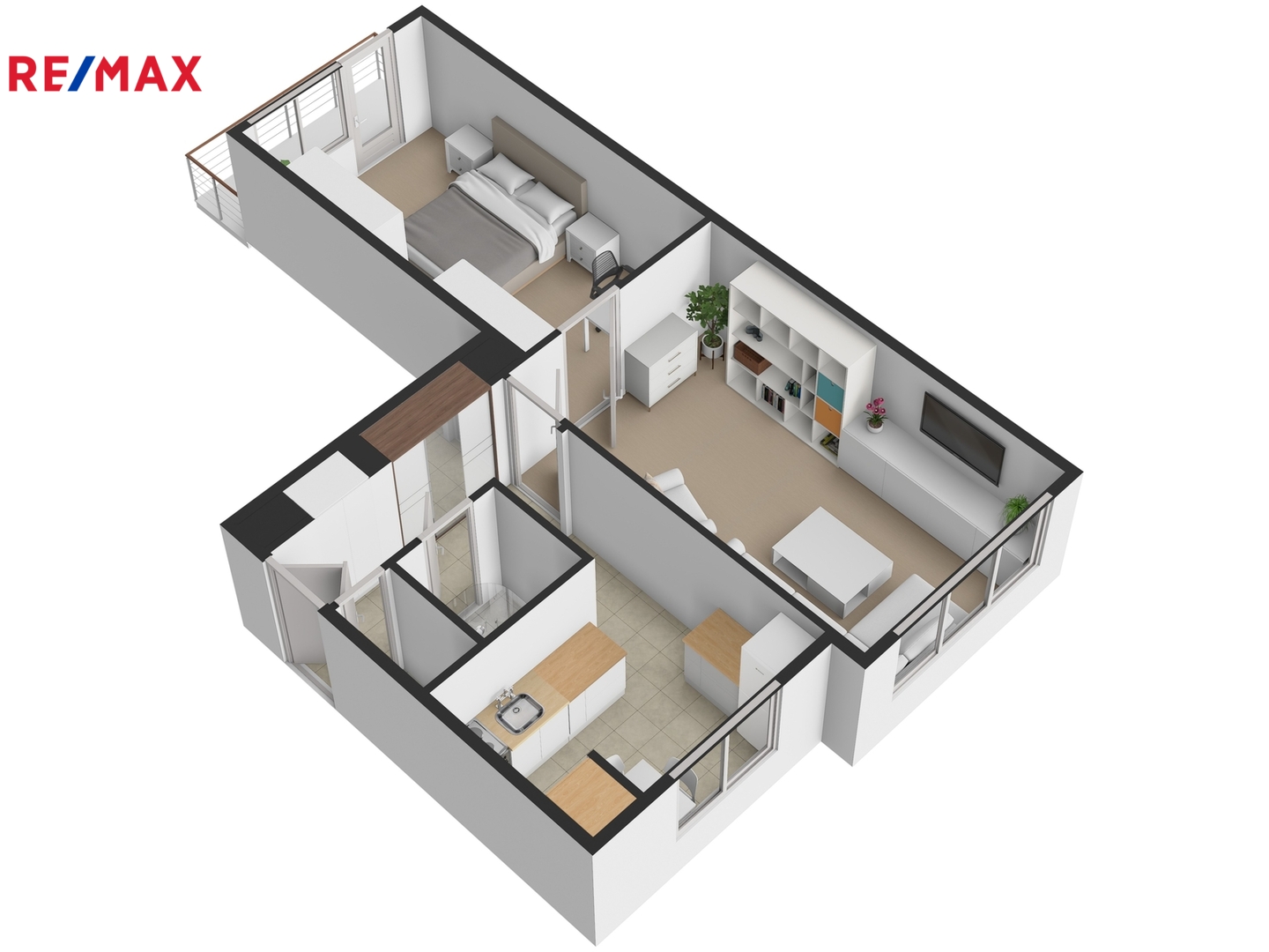 Dispozice bytu zahrnuje obývací pokoj o velikosti 19 m² s výhledem do klidného vnitrobloku, prostornou ložnici o velikosti 15 m² se vstupem na balkon a kuchyni s kuchyňskou linkou. Součástí bytu je také koupelna se sprchovým koutem a samostatná toaleta. Chodba bytu nabízí dostatek prostoru pro vestavěné skříně a další úložné řešení.