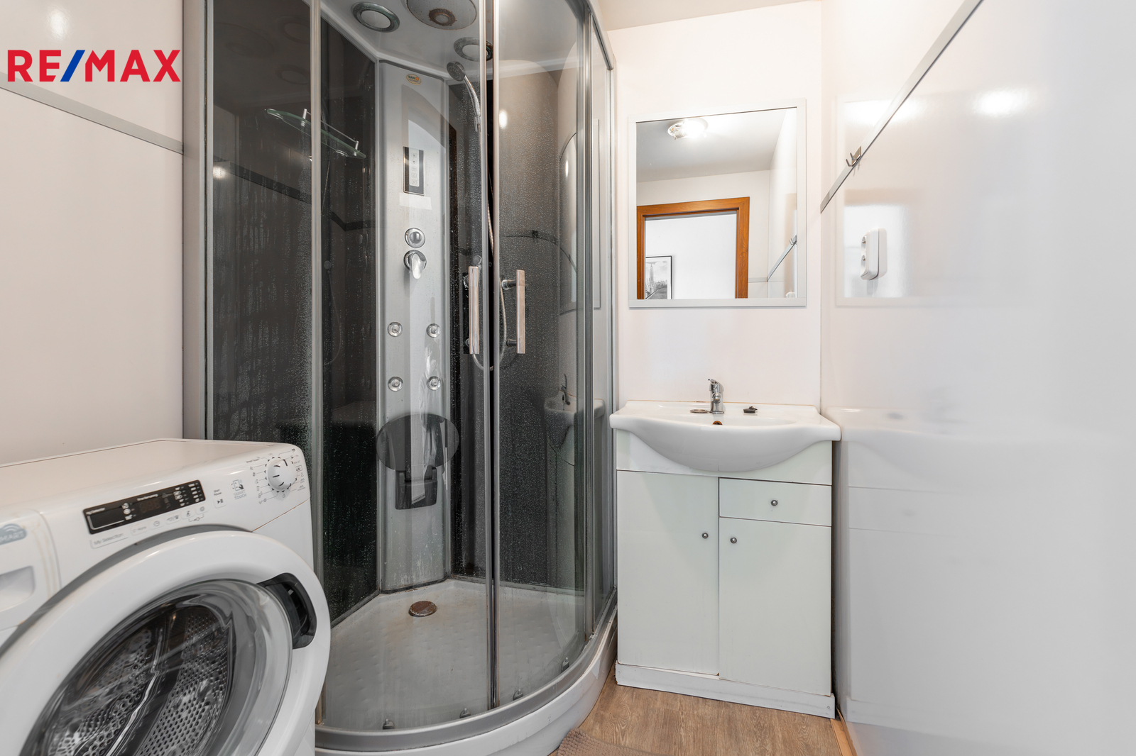 Byt prošel v roce 2014 rekonstrukcí, jejíž součástí bylo i praktické rozdělení původní koupelny na dvě samostatné místnosti – koupelnu se sprchovým koutem a samostatné WC. Toto řešení oceníte zejména v ranním shonu nebo pokud žijete ve více lidech.
