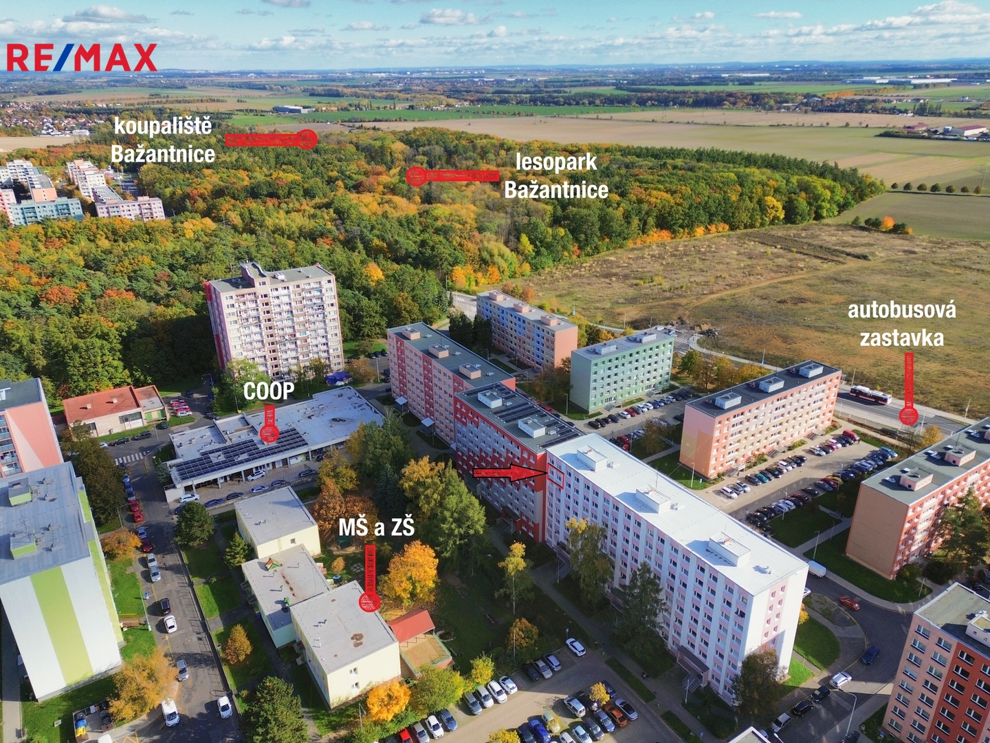 V pěší vzdálenosti se nachází také vlakové nádraží (cca 15 minut) a autobusová zastávka s přímým spojením do Prahy – Nádraží Veleslavín a Zličín. V okolí je rovněž poliklinika (5 minut chůze), mateřská i základní škola, a další služby. Na dosah je oblíbený lesopark Bažantnice a přibližně 1 km od domu (cca 10 minut pěšky) se nachází letní koupaliště Bažantnice, ideální místo pro odpočinek a rekreaci v přírodě.