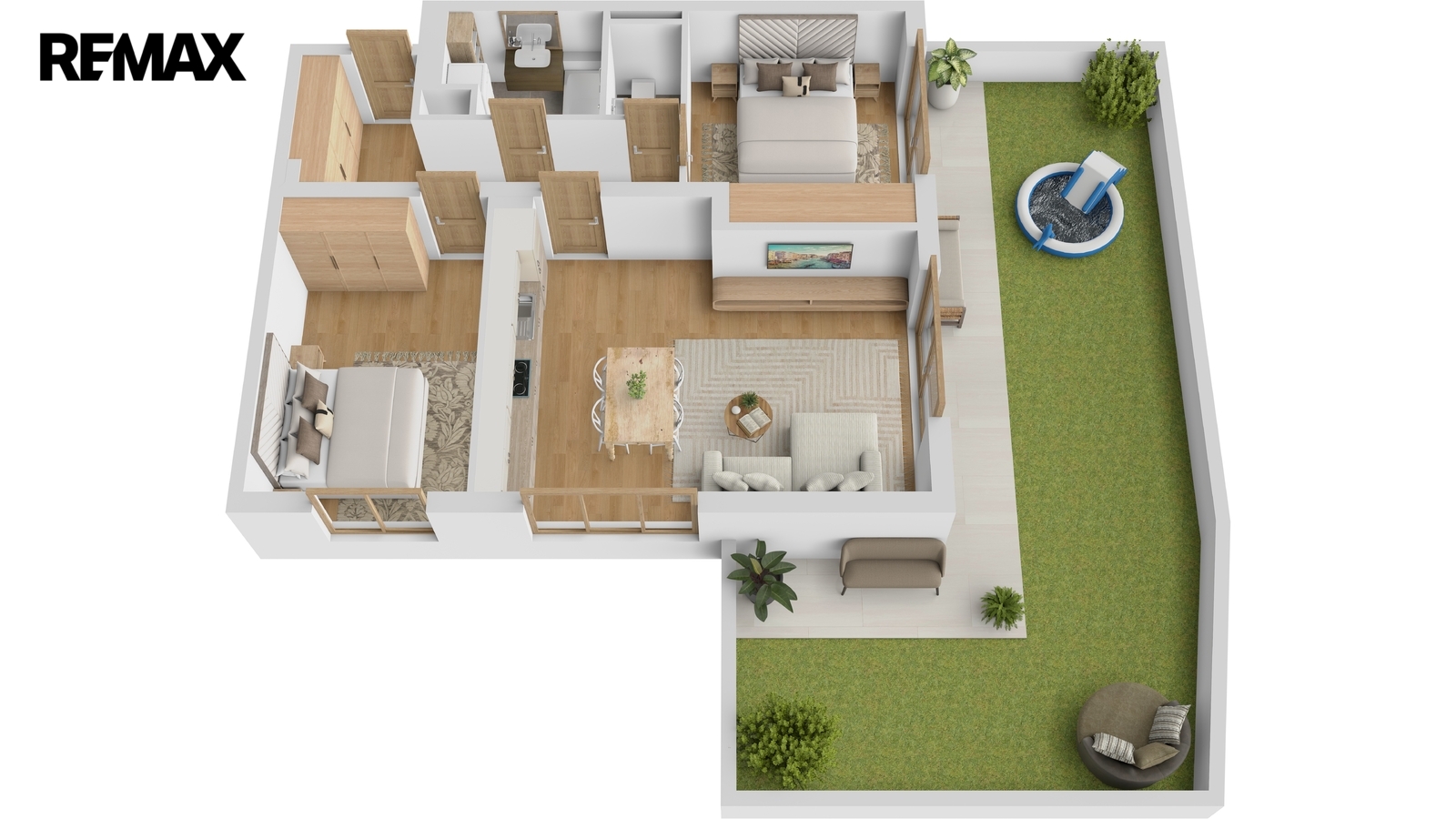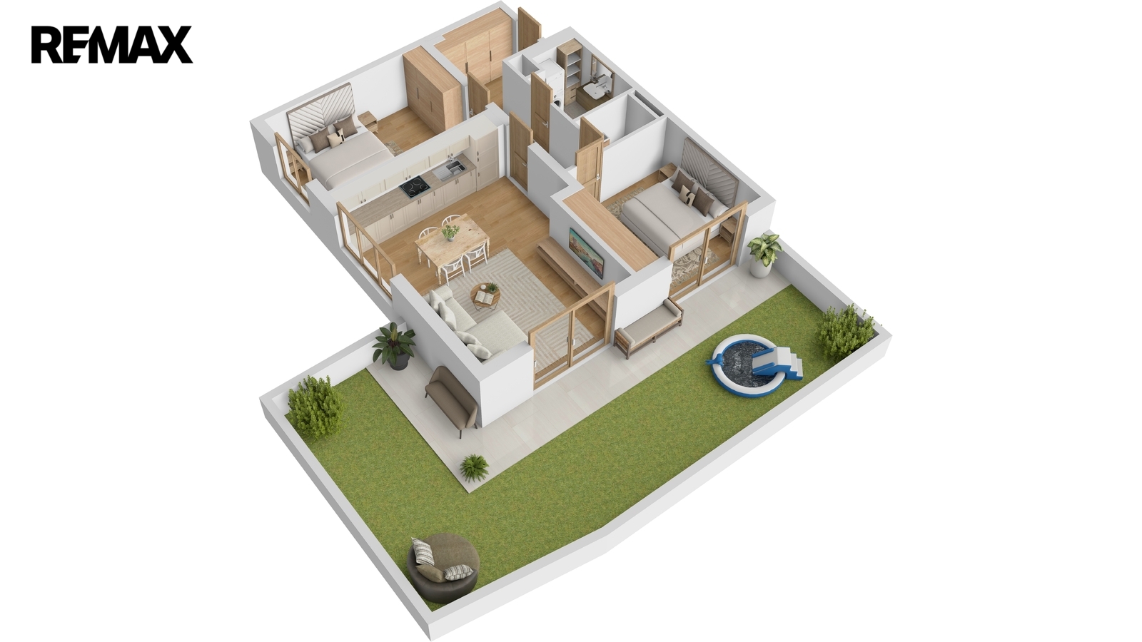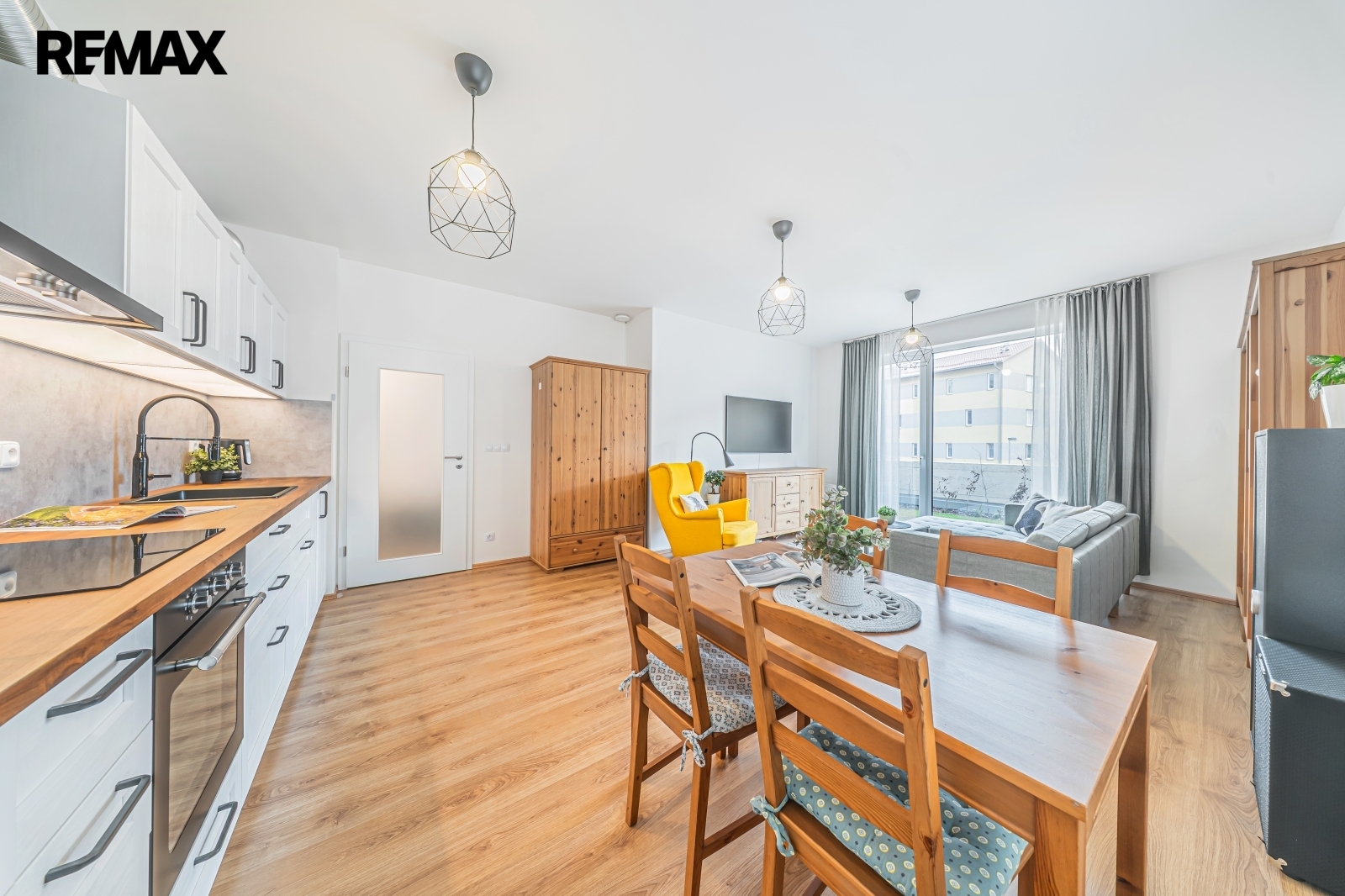 Jedná se o prakticky řešený, prostorný a světlý byt s orientací na jihozápad. Vstup na terasu je možný francouzskými okny z obývacího pokoje i z ložnice. Skleněné výplně tvoří trojsklo, dále pak bezpečnostní folie a elektricky ovládané předokenní žaluzie.