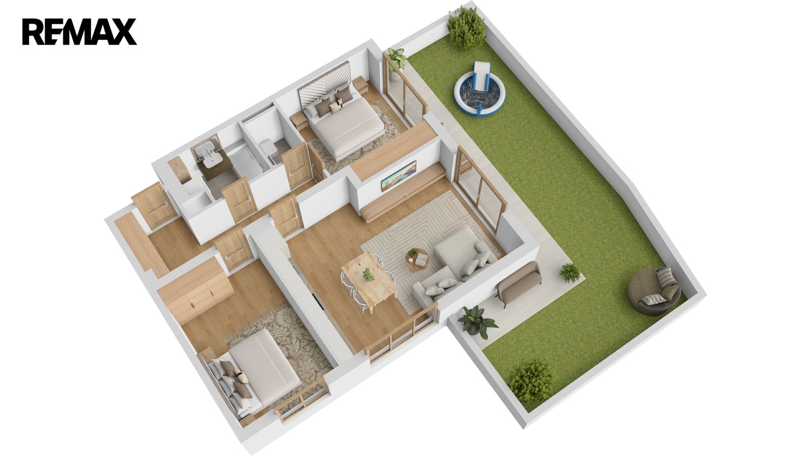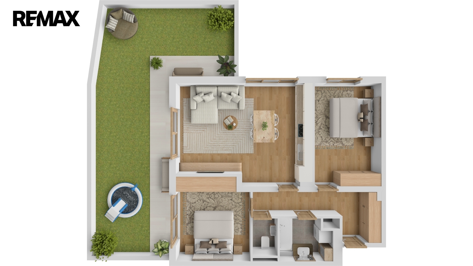 Mezi přednosti této nemovitosti patří bezesporu terasa o rozloze 14,85 m² integrovaná do předzahrádky o velikosti 42,31 m², která je ideálním místem pro relaxaci nebo rodinné chvíle na čerstvém vzduchu. Zahrádka je přímo nad rostlým terénem, není tím pádem tolik omezena váhovým limitem, jako je tomu u střešních zahrad nad užitnými prostory domu. K bytové jednotce dále náleží sklep o rozloze 2,25 m², což zaručuje dostatek úložného prostoru.