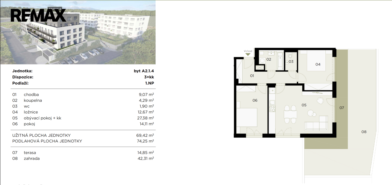 Vnitřní plocha bytu: 74,25 m²