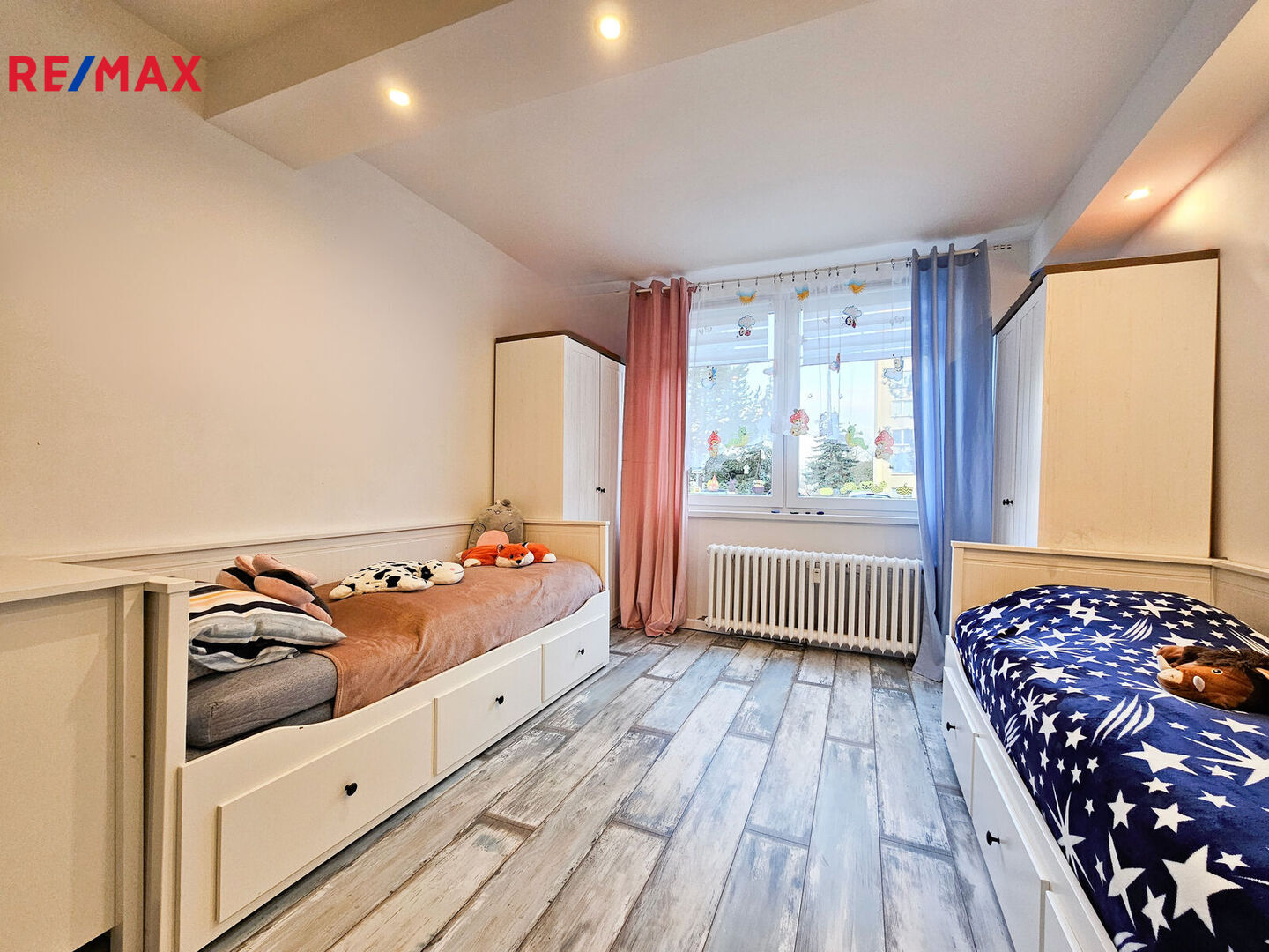 Úložného prostoru není nikdy dost, proto je v ložnici zabudována velká vestavěná skříň, další je pak na chodbě. K bytu patří také sklepní koje.