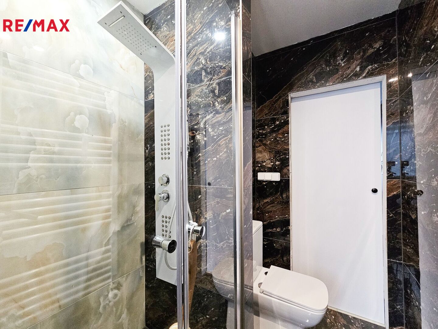 Díky nápadité stavební úpravě jádra se našlo místo pro vanu i sprchový kout, navíc je v koupelně okno, což nebývá v panelových domech běžné. Pro úsporu místa byly nahrazeny původní dveře pokojů novými obložkami s posuvnými dveřmi.