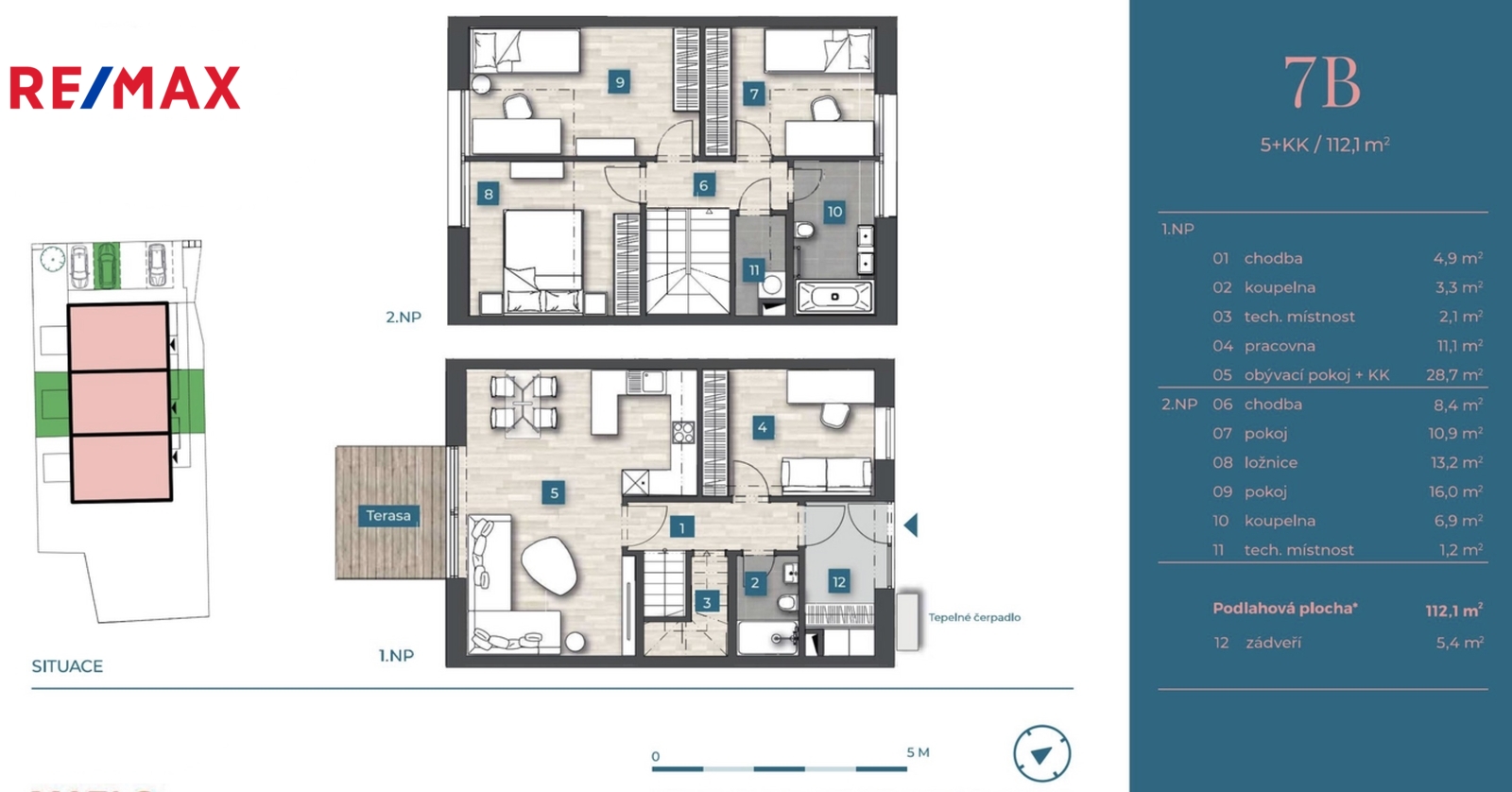 Každý dům nabízí do detailu promyšlenou dispozici 5+kk - 4 samostatné pokoje, obývací pokoj s kuchyňským koutem, 2 koupelny a technickou místnost. Venku posedíte na terase či na zahradě a před domem zaparkujete až dva své vozy.