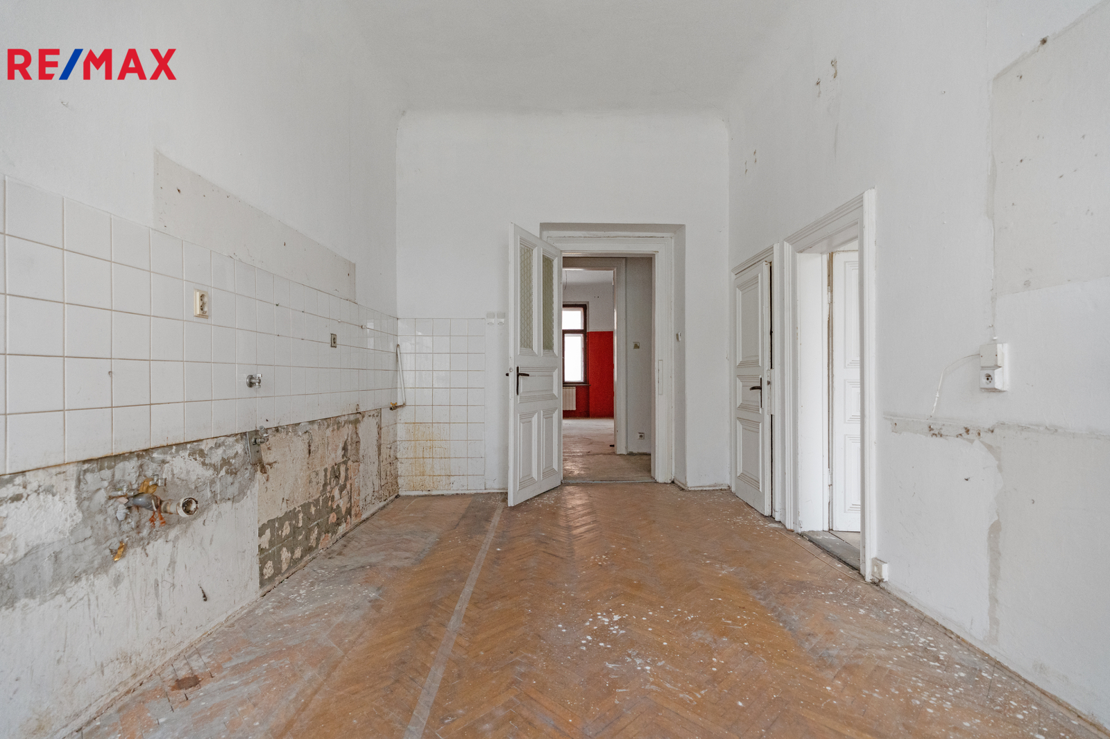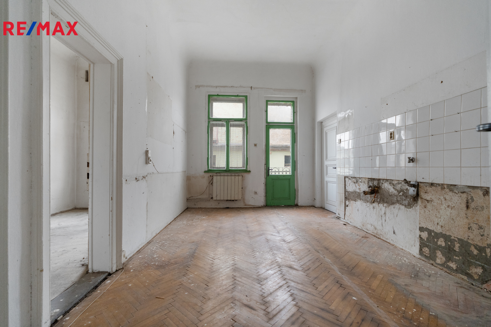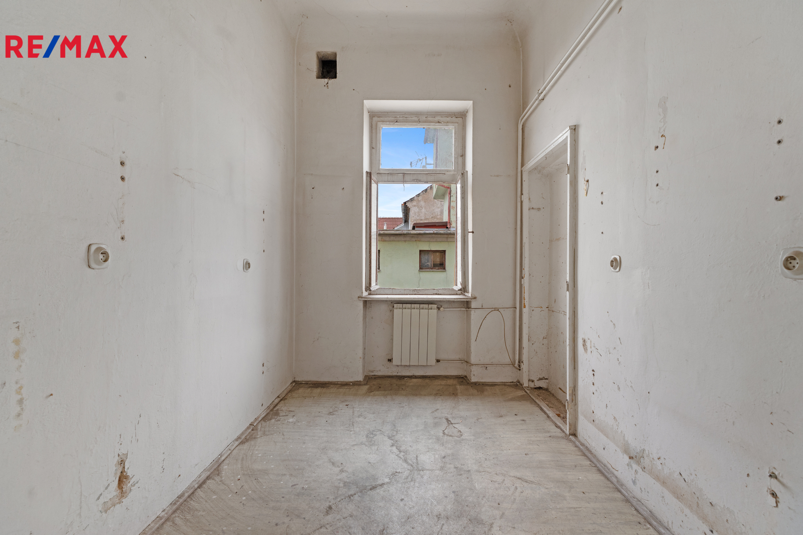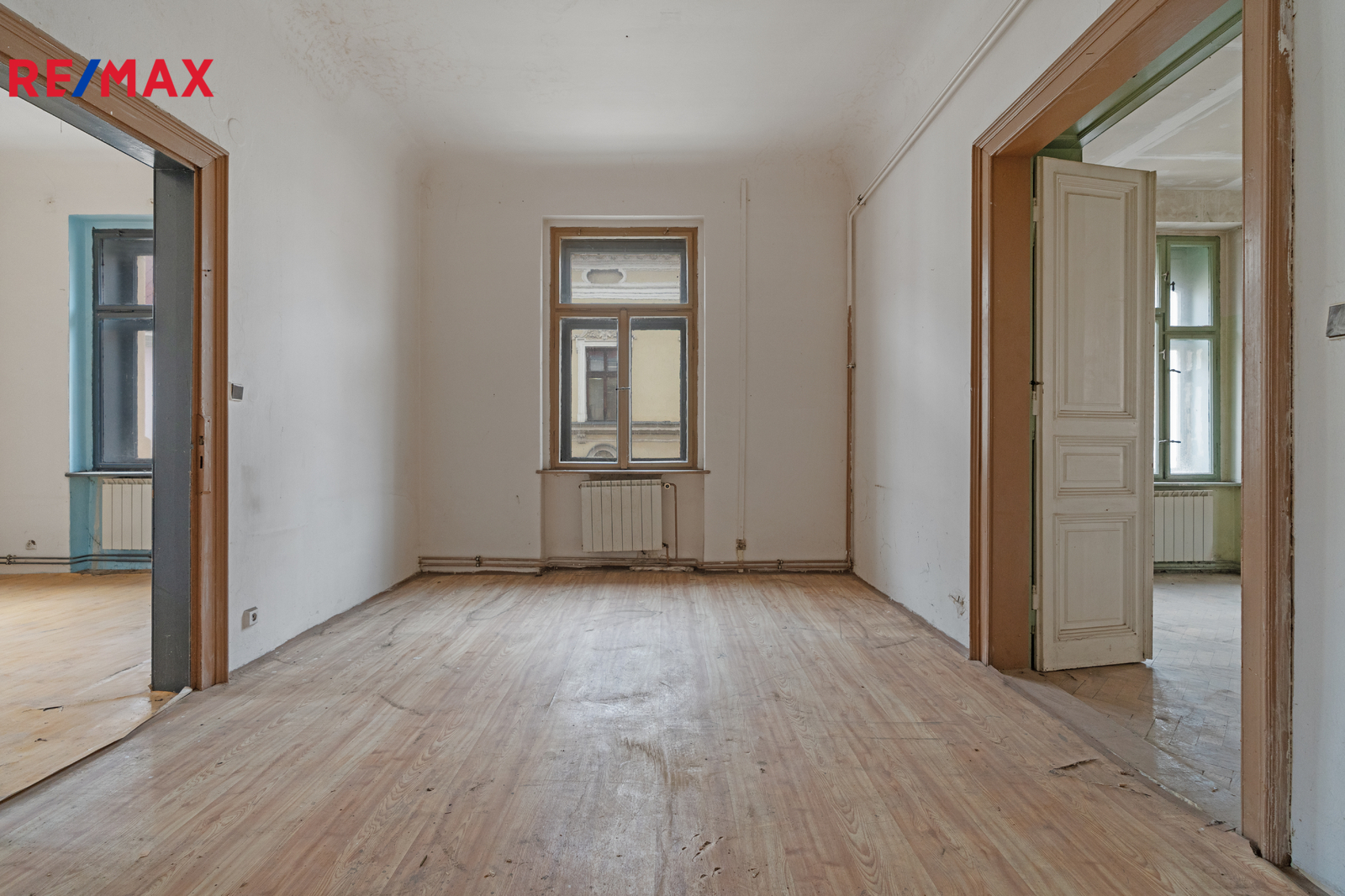Nabízím prostor původního bytu 4+1 s další menší místností. Byt je mnoho let neobývaný a jeho stav je zanedbaný. Nicméně se před vámi otevírá prostor s velkým potenciálem a velkými možnostmi skloubit to původní historické s novým. Tento prostor je jako solitér čekající na vaše ruce a fantazii. O tom, jak prostor bude ve finále vypadat rozhodnete vy. A to od základu - podlahy, rozvody, vybavení bytu. Jediné co vás dělí od nadšených návštěv obdivujících váš nový domov je byt koupit a začít budovat. Tento byt přes svoji stávající podobu vypadá omšele, ale to co v sobě ukrývá je výjimečné. Nic před vámi neschovává, nic nepřeceňuje. A cena - 47 000,-Kč za metr čtvereční bytu v centru města.