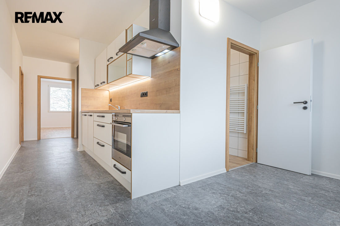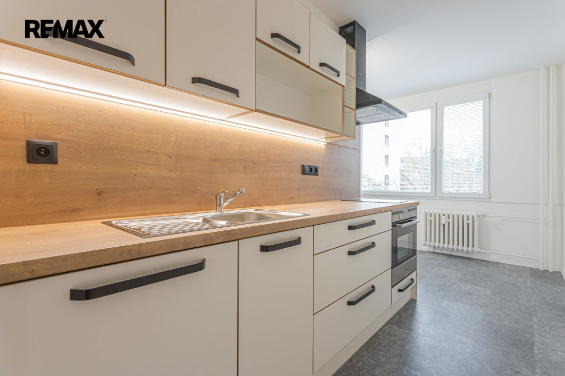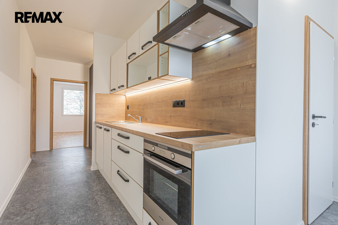 Byt se nachází ve 2.podlaží zrekonstruovaného panelového domu (s výtahem) v klidné a příjemné lokalitě v ulici Josefa Schovánka. Rekonstrukce bytu proběhla skutečně kompletně - nové rozvody elektro a ZTI, vyzděné jádro, zcela nová koupelna, samostatné WC, podlahy, dveře, moderní kuchyňská linka na míru se zabudovanými spotřebiči (sklokeramická varná deska, trouba, digestoř a myčka), v předsíni je k dispozici praktická vestavěná skříň, vše sladěno v moderním designu.