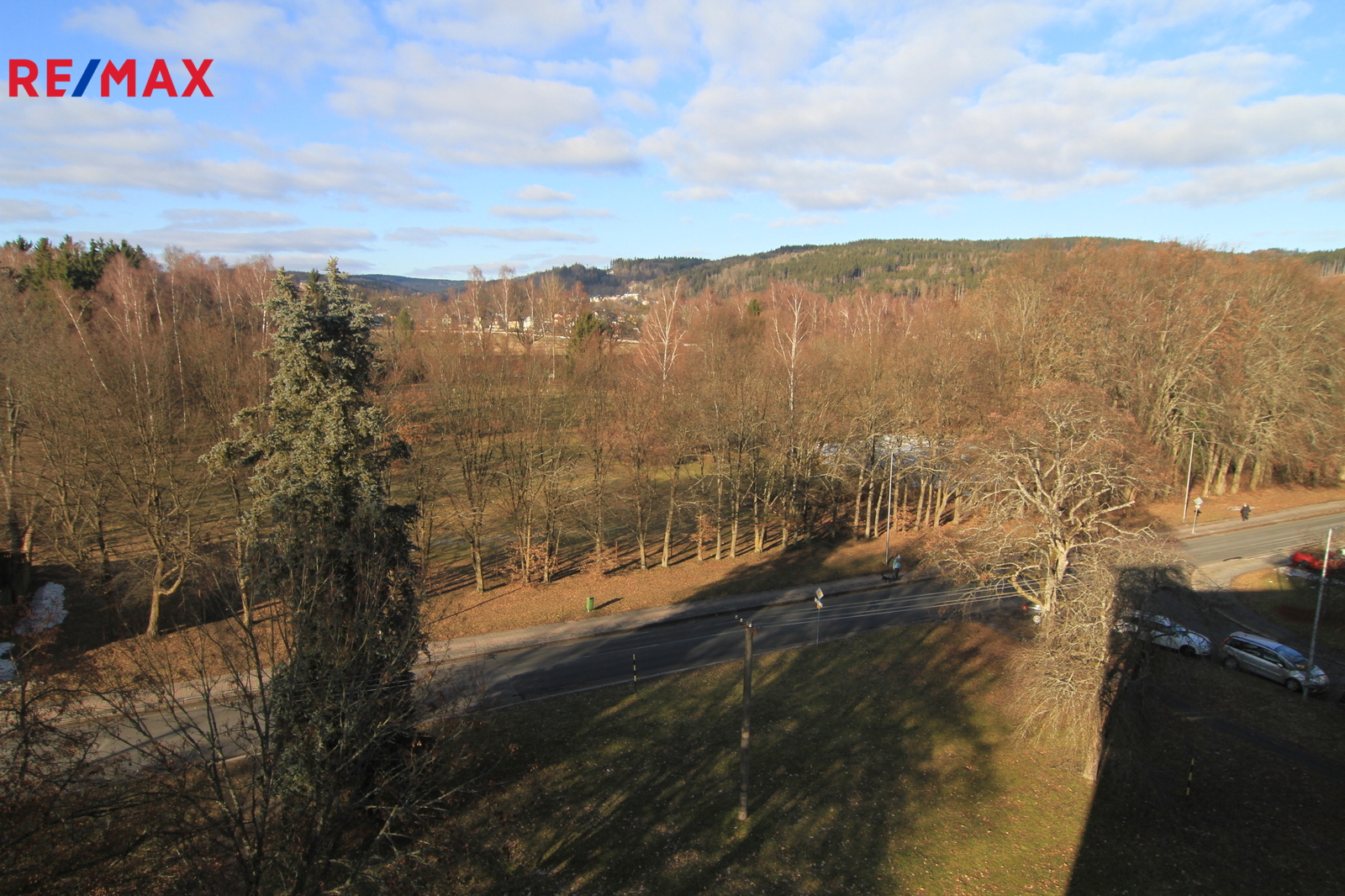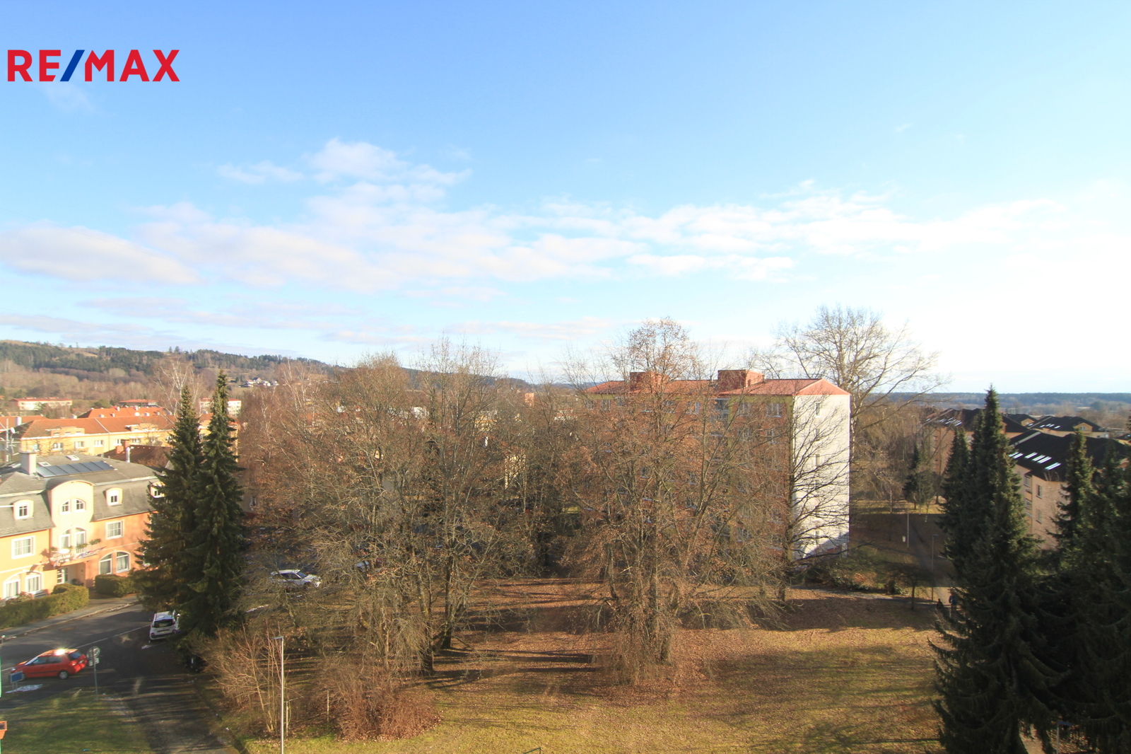 Je to klasický panelový byt 4+1 v posledním patře domu v Úšovicích. A právě to poslední patro je jeho největší výhoda. Nad vámi už nikdo nebydlí a z oken je otevřený výhled směrem na plochou dráhu a okolní krajinu. Je to ten typ výhledu, který člověka večer uklidní. K bytu patří lodžie, takže si ten prostor a výhled můžete užít i venku.