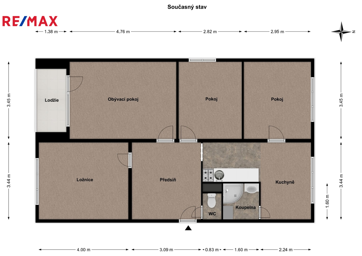 Orientace: ložnice a obývací pokoj s lodžií - jih, prostřední pokoj - západ, kuchyně a vedlejší pokoj - sever