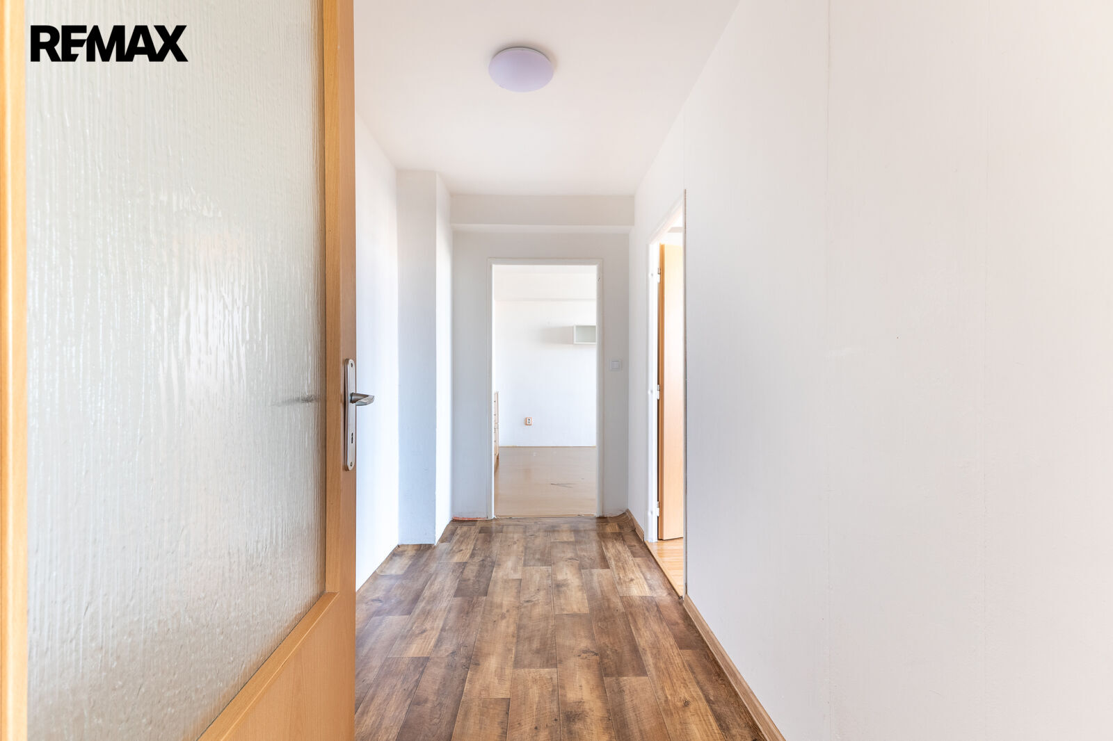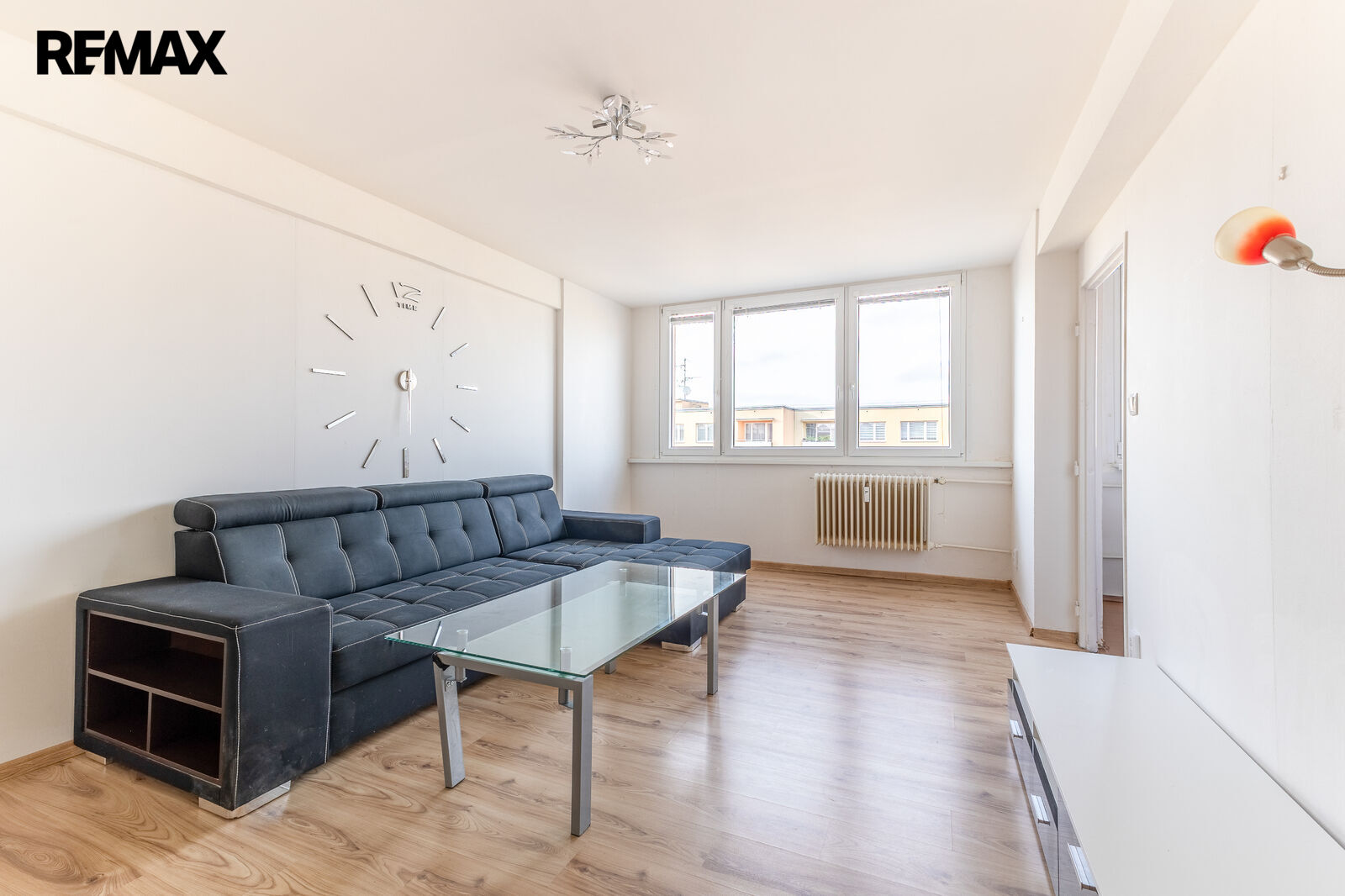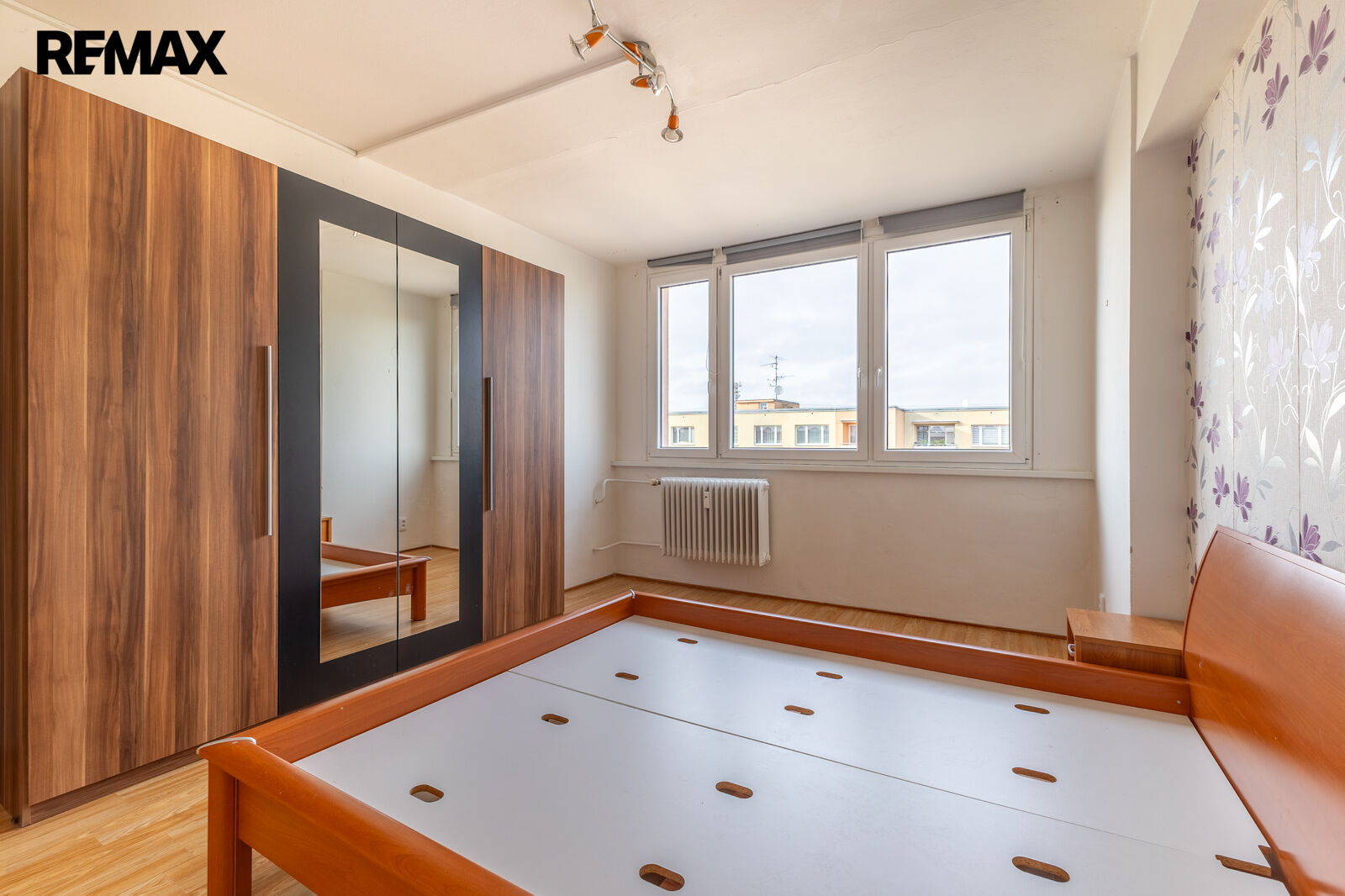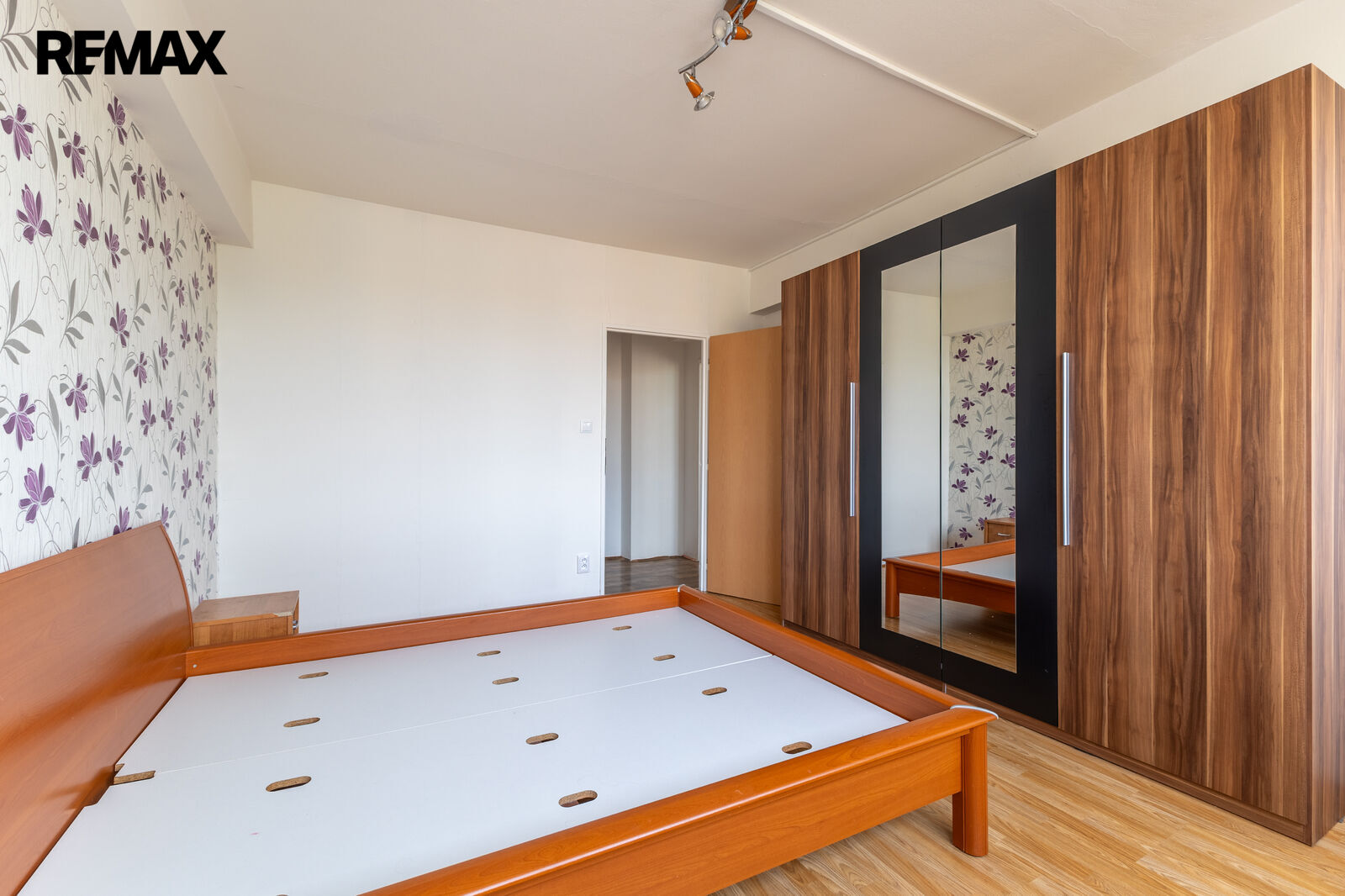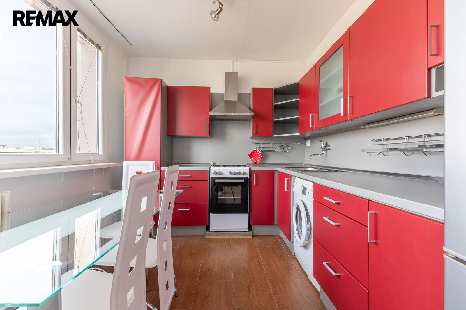 Nabízíme světlý a prostorný byt 3+1 o podlahové ploše 88,7 m², který se nachází v 9. patře kompletně revitalizovaného panelového domu. Byt je velmi dobře řešený, má 2 neprůchozí pokoje, prostorný obývací pokoj, kuchyňský kout a lodžii o výměře 3 m² přístupnou z jedním z pokojů. K bytu náleží také 2 sklepní kóje (celkem 4 m²). Dům prošel kompletní revitalizací - zateplení, plastová okna, společné prostory včetně kamerového systému a výtahu.