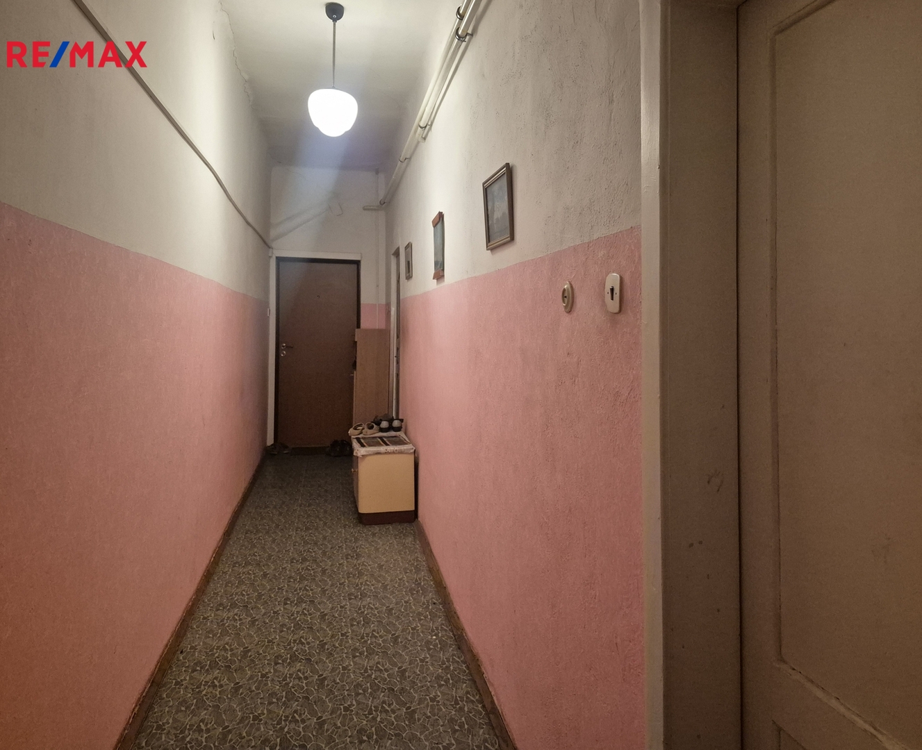 Byt je umístěný ve 2. podlaží cihlového historického domu bez výtahu. Dům je dobrém, ale původním stavu, částečně zateplený pouze vlastníky, kteří si zateplení dělali sami.