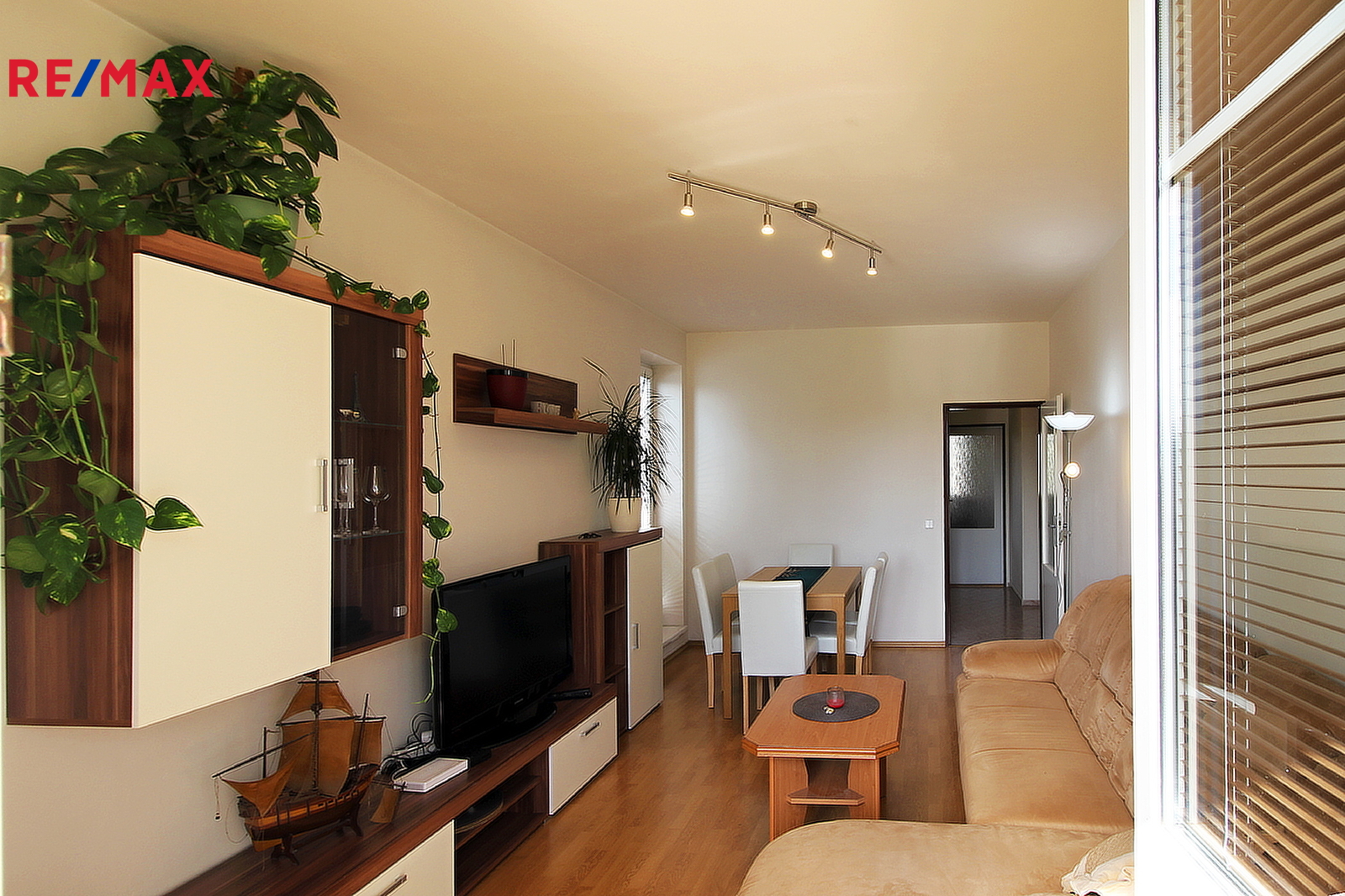 Plastová okna s žaluziemi jsou orientovaná - ložnice, kuchyň na sever, obývací pokoj s lodžií na jih. K bytu náleží sklep a možnost využití společných prostor, kolárny a sušárny. Díky své orientaci a umístění je byt světlý a teplý.