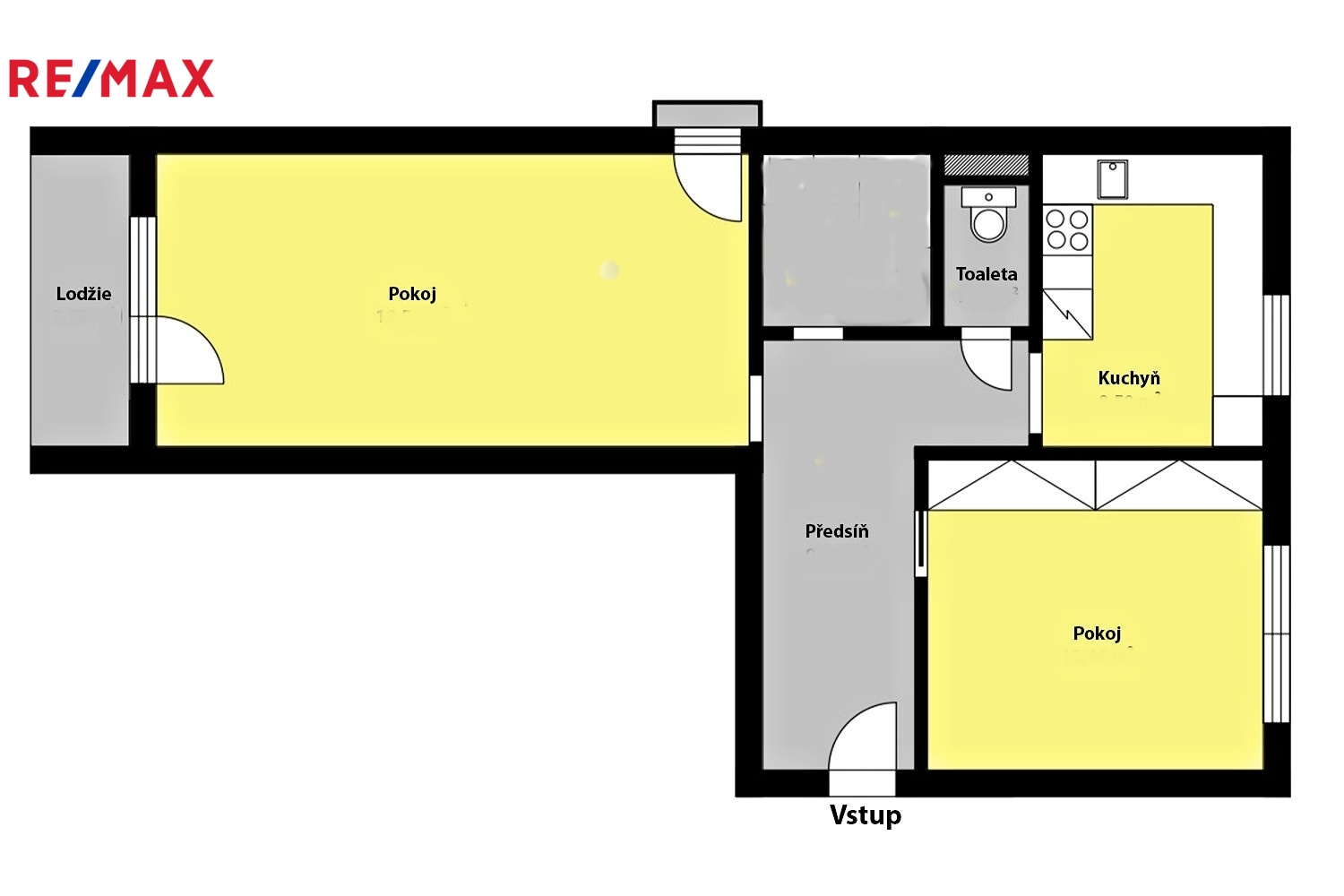 Dispozice bytu: z chodby 9,36 m2 s vestavěnou skříní vcházíte do všech místností bytu, ložnice 12,37 m2, kuchyně 8,58 m2, WC 1,30 m2, koupelny s vanou 4,40 m2 a obývacího pokoje 18,64 m2 s lodžií 3,96 m2.