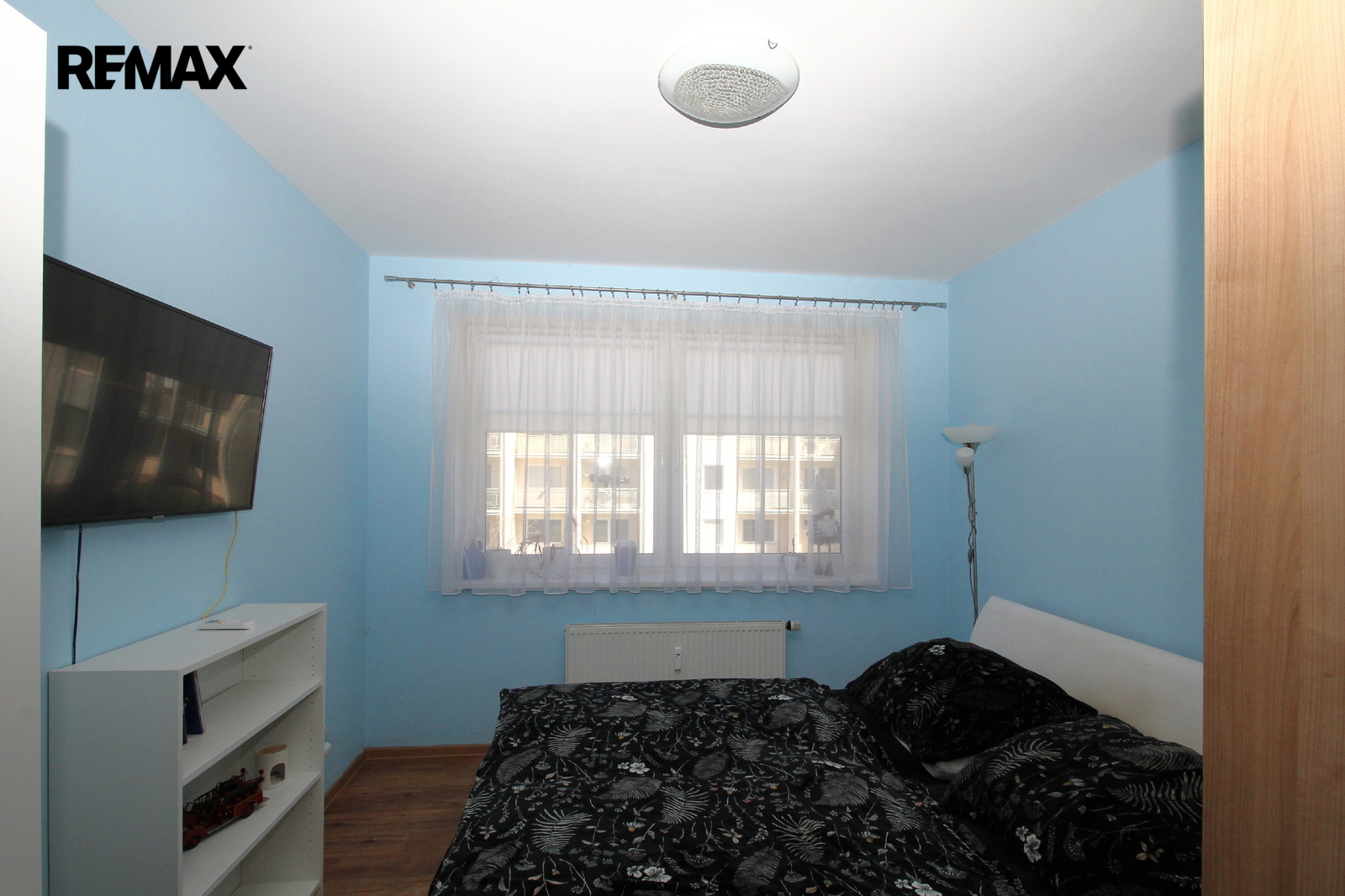 Dispozice zahrnuje chodbu s třídílnou vestavěnou skříní 9,34 m2, dva samostatné pokoje, ložnici 12,37 m2 a obývací pokoj 18,64 m2 se vstupem do lodžie 3,96 m2, oba pokoje jsou osazeny klimatizační jednotkou, dále kuchyň 8,58 m2, koupelnu 4,40 m2 se sprchovým koutem a samostatnou toaletu 1,30 m2. K bytu náleží sklep v 1. NP o ploše 2,70 m², který poskytuje další úložné prostory, dále je možnost využití společné sušárny a kolárny. V okolí je dostatek parkovacích míst.