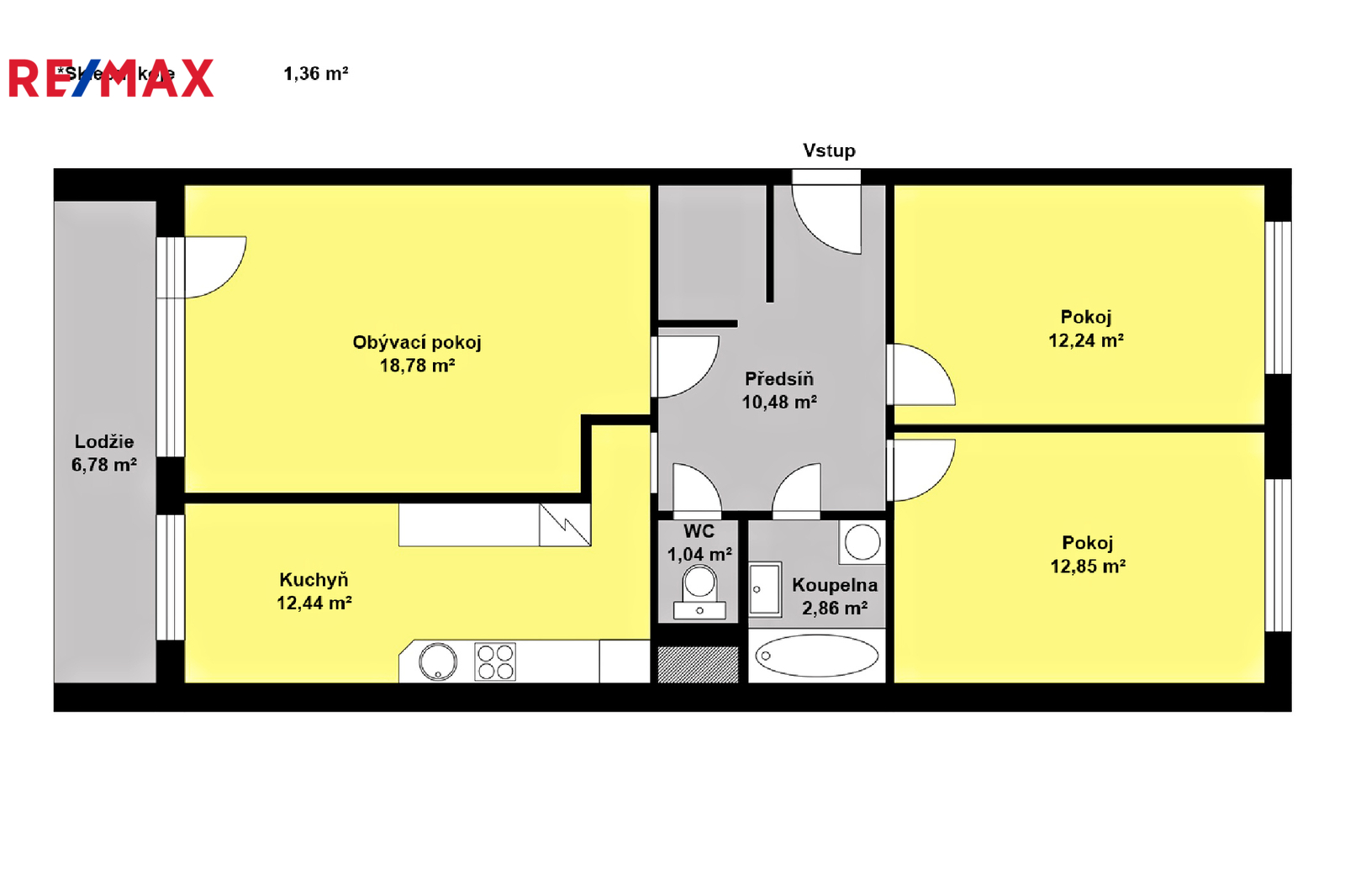 Bytová jednotka o celkové ploše 78,83 m² (užitná plocha 70,69 m²) se nachází ve 3. patře osmipodlažního panelového domu, který prošel celkovou revitalizací a je v dobrém stavu.