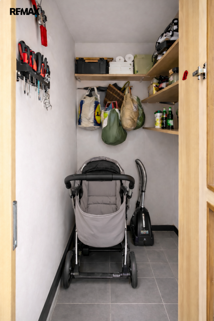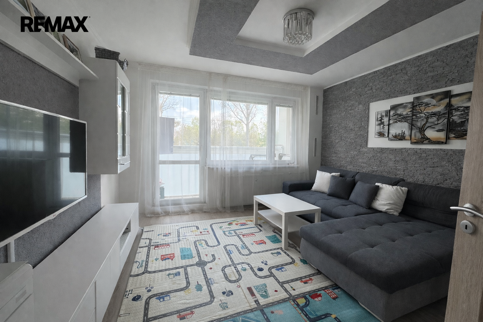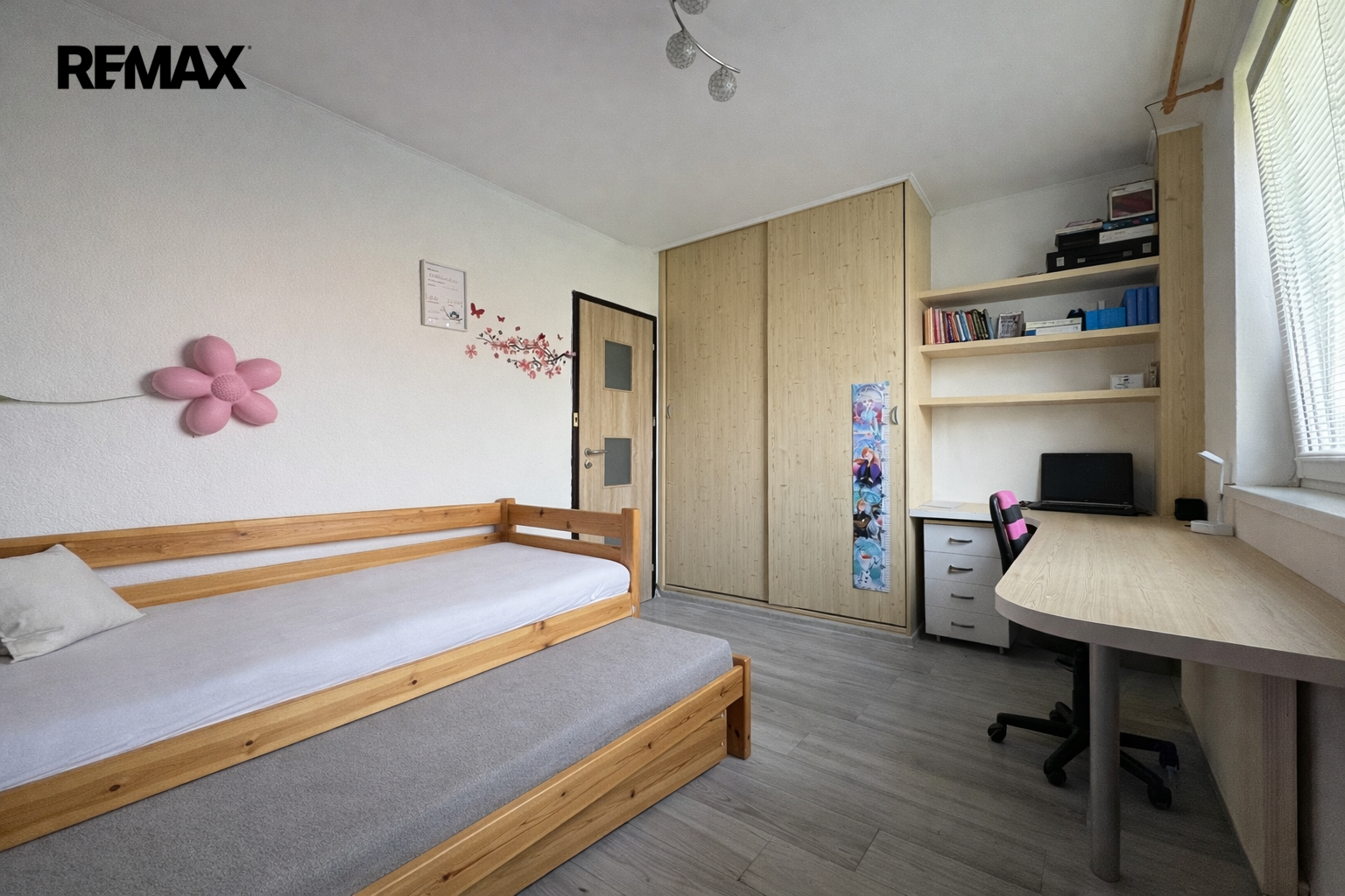Byt nabízí praktické dispoziční řešení – najdete zde ložnici, samostatný pokoj vhodný jako dětský pokoj či pracovna, obývací pokoj, kuchyni, koupelnu s vanou a samostatné WC. Součástí bytu je také prostorná chodba s vestavnou skříní, praktická místnost na uskladnění věcí a botník řešený ve stylu menší komory. Příjemným bonusem je zasklená lodžie.