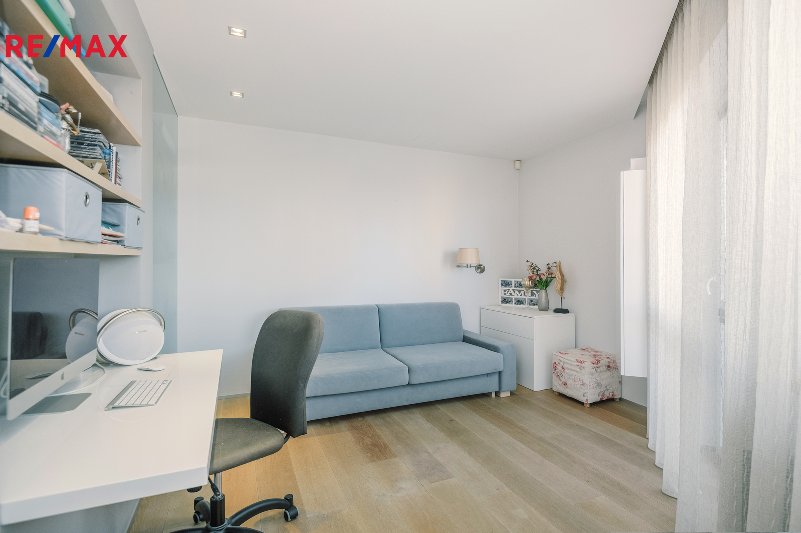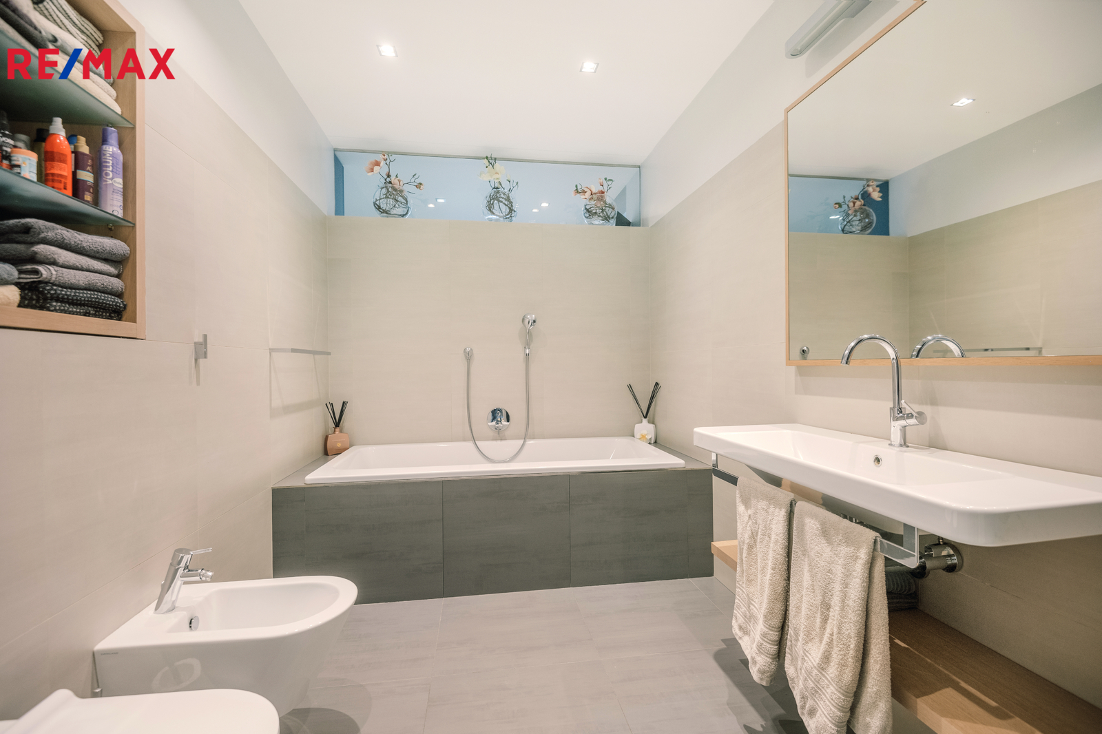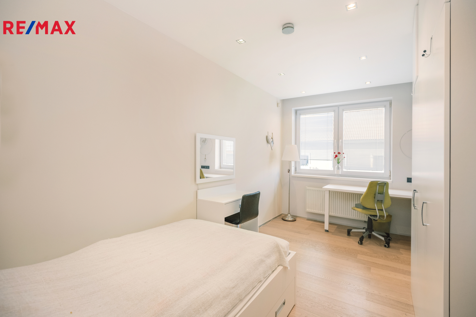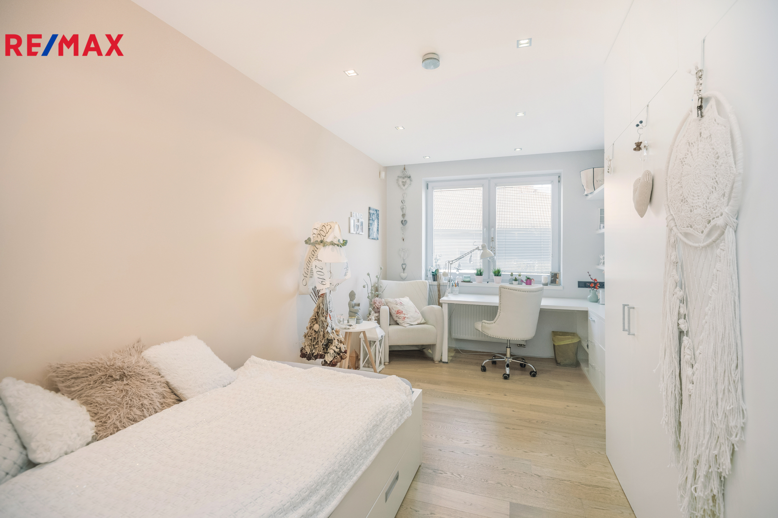 Byt dále nabízí tři samostatné neprůchozí pokoje, sloužící jako ložnice a dětské pokoje, dvě koupelny s toaletou, prádelnu a technickou místnost. Součástí bytu balkon a terasa.