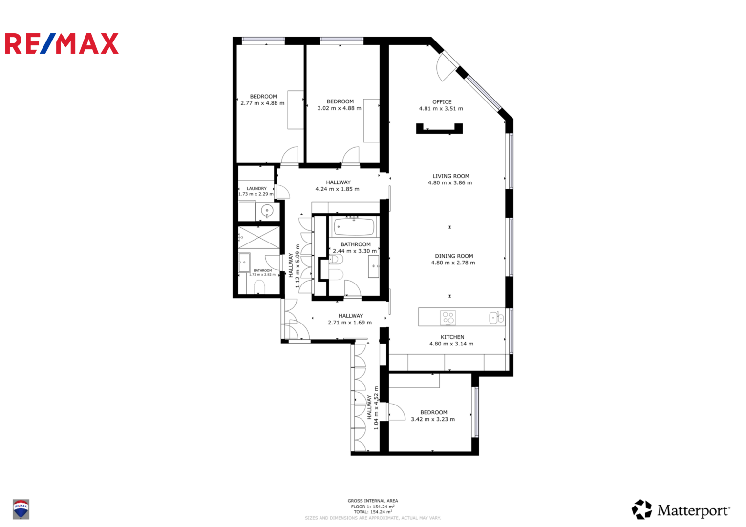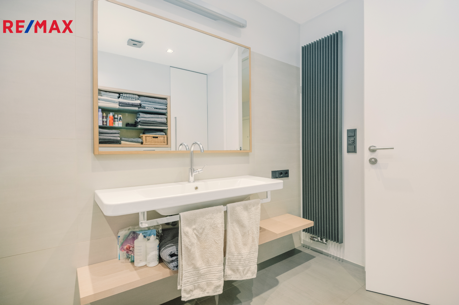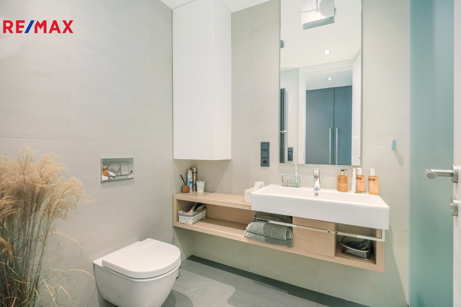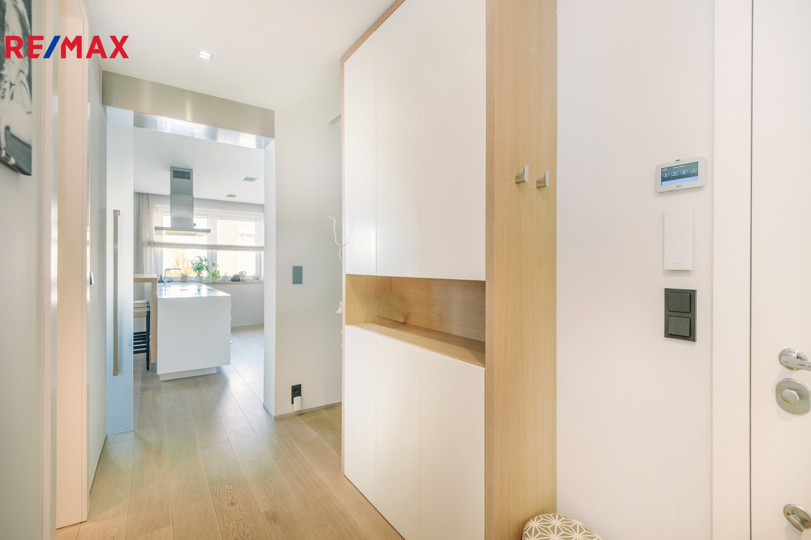 Byt dále nabízí tři samostatné neprůchozí pokoje, sloužící jako ložnice a dětské pokoje, dvě koupelny s toaletou, prádelnu a technickou místnost. Součástí bytu balkon a terasa.